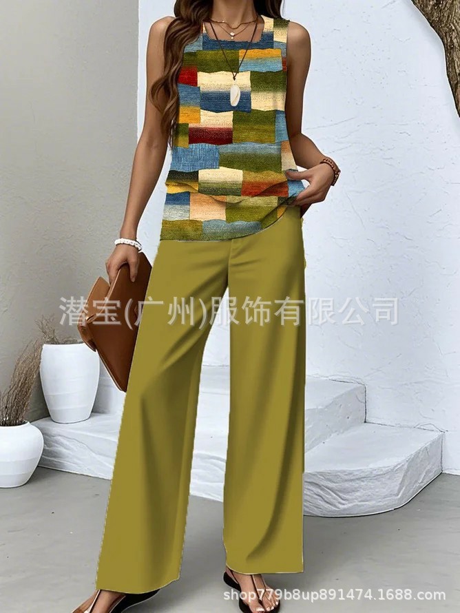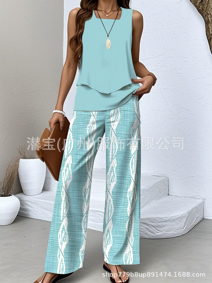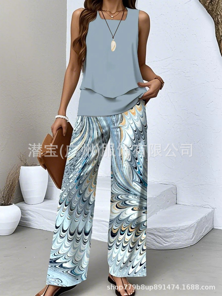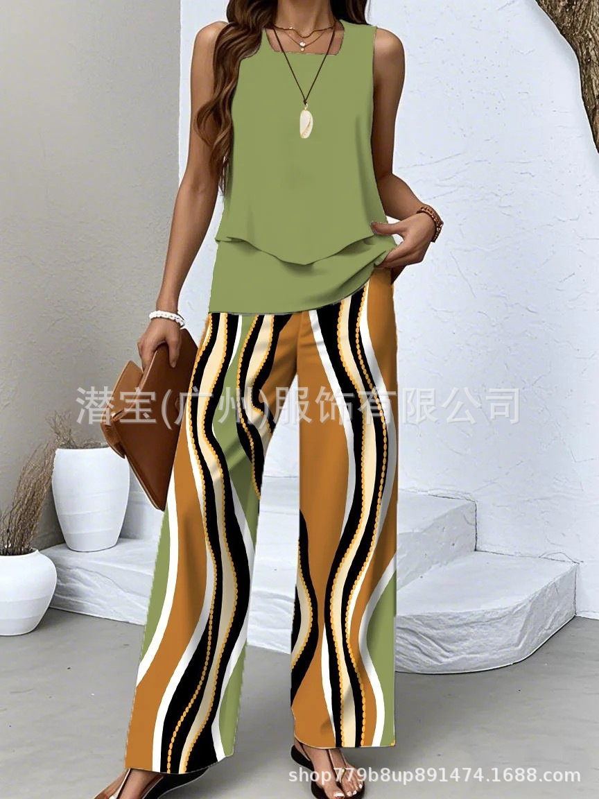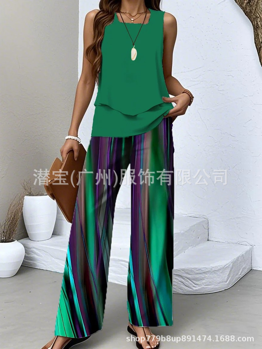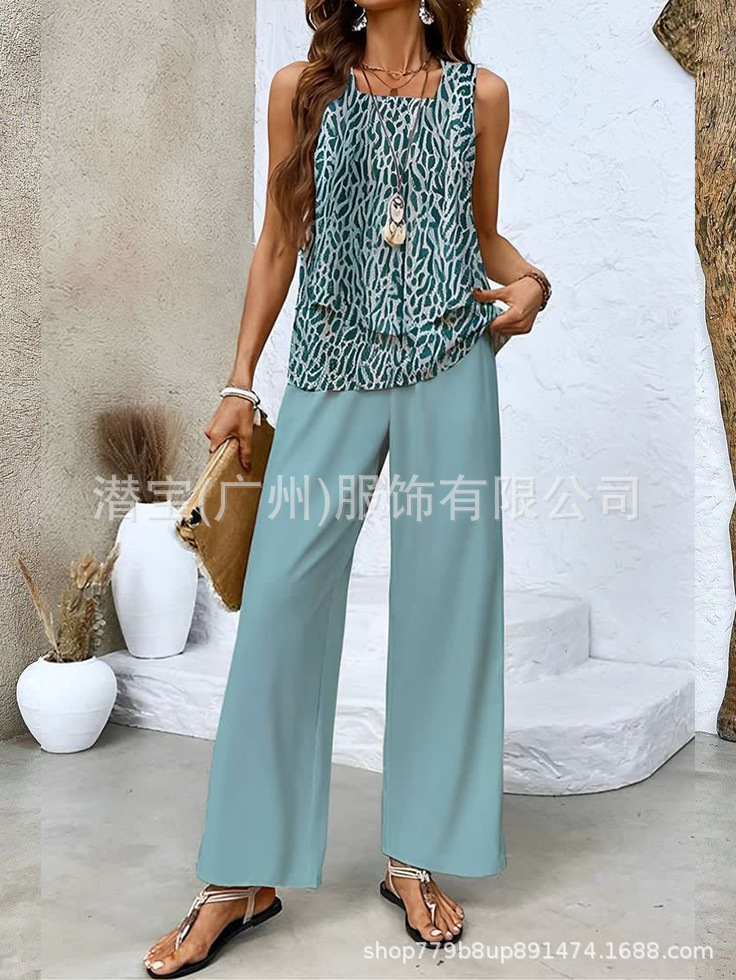 2025 спот новая трансграничная внешняя торговля Европейская и американская женская одежда без рукавов двойной жилет брюки набор из двух частей
