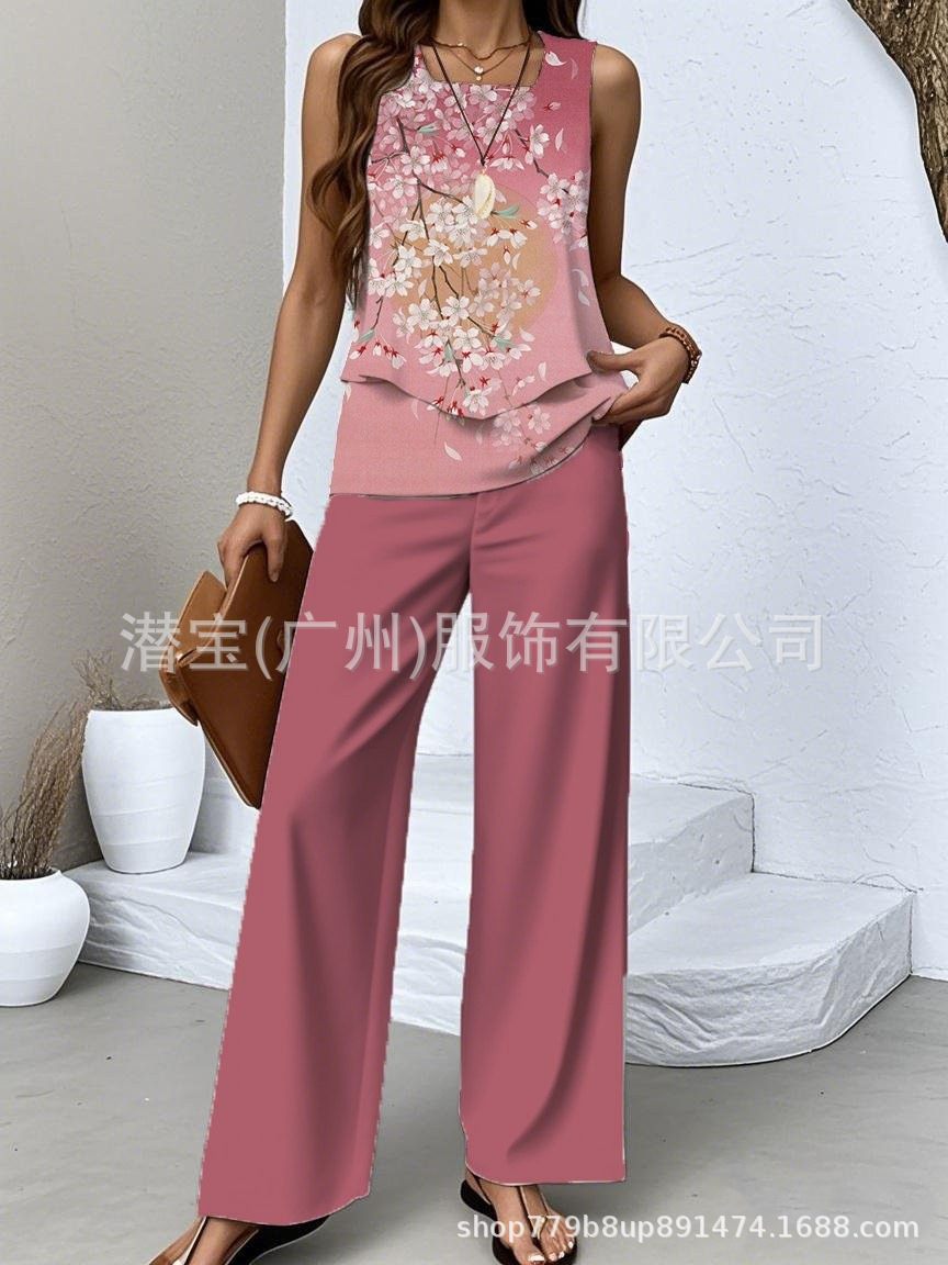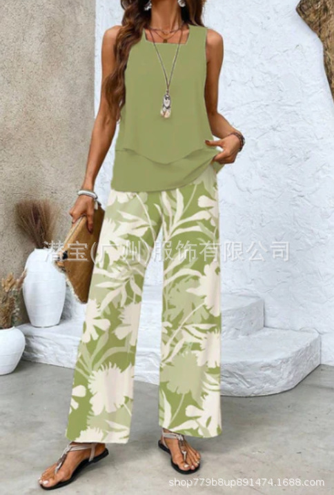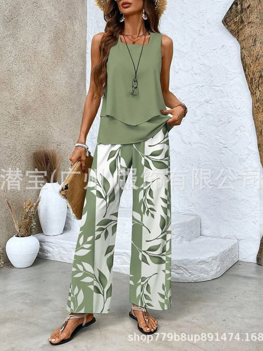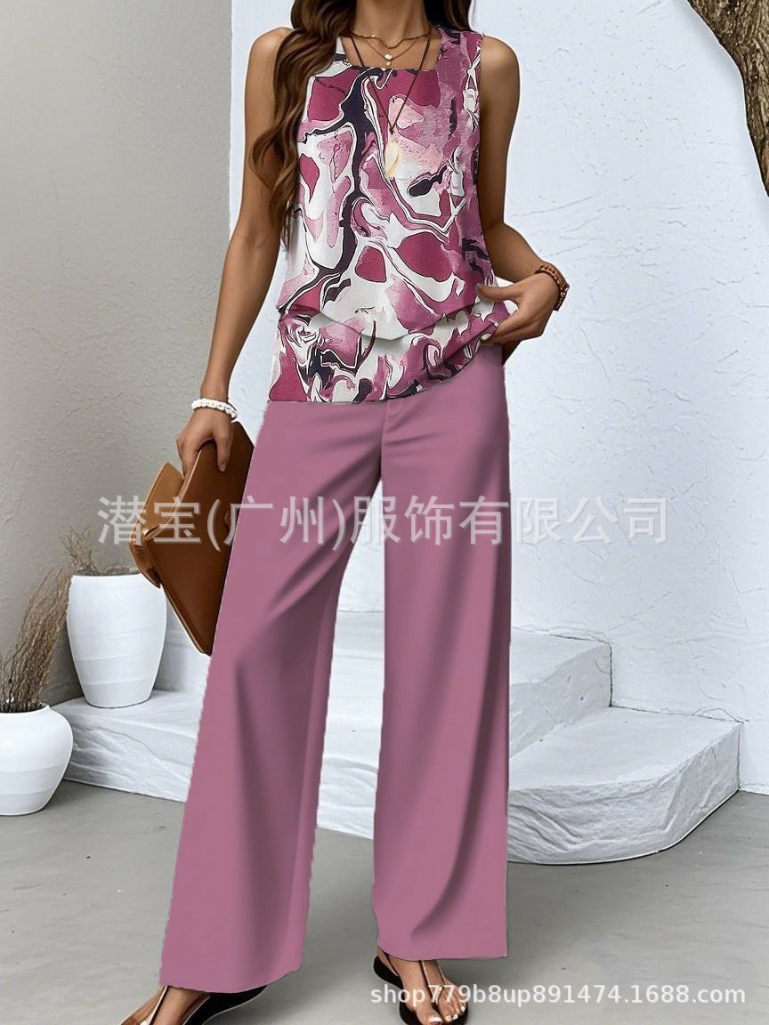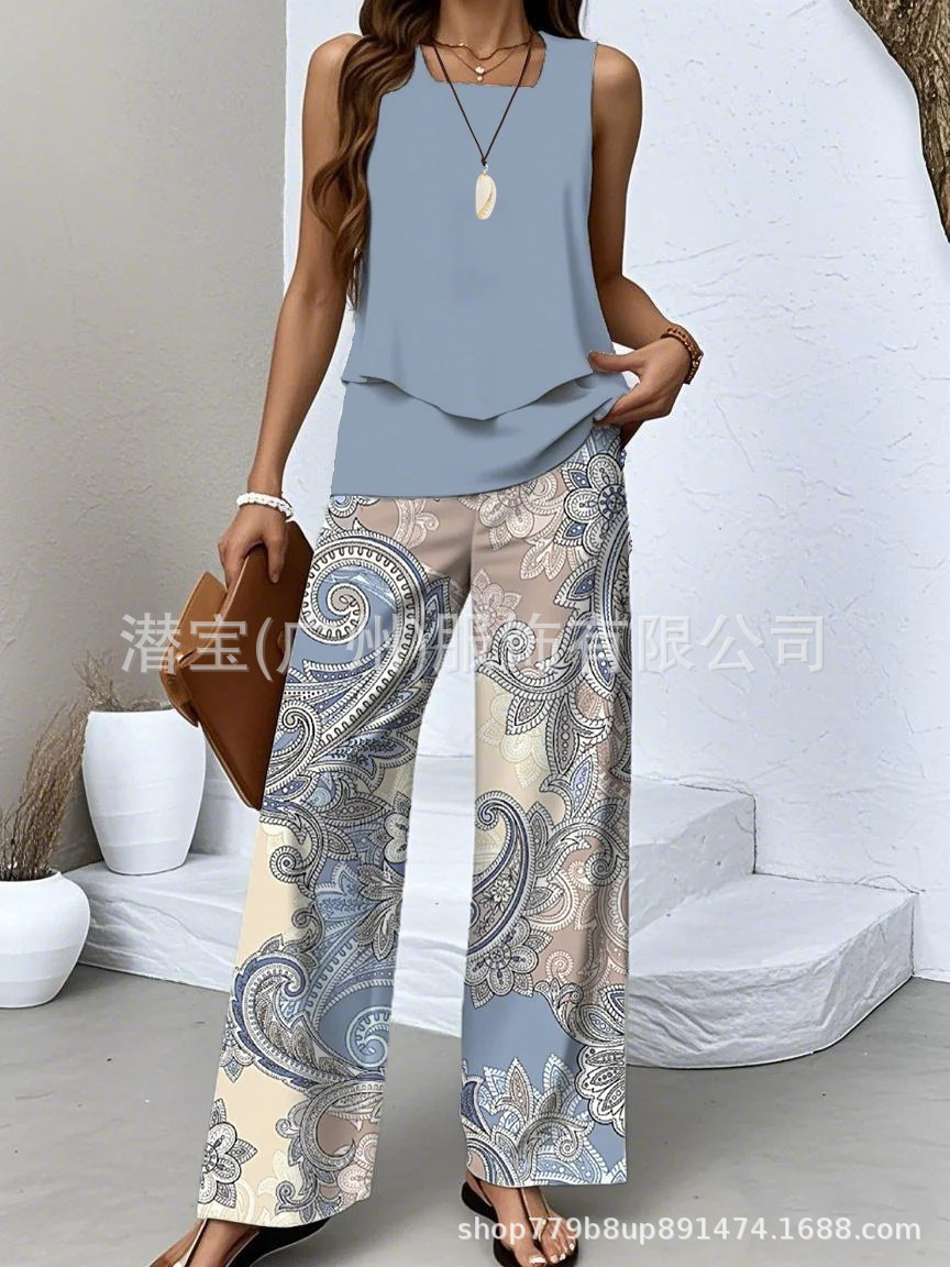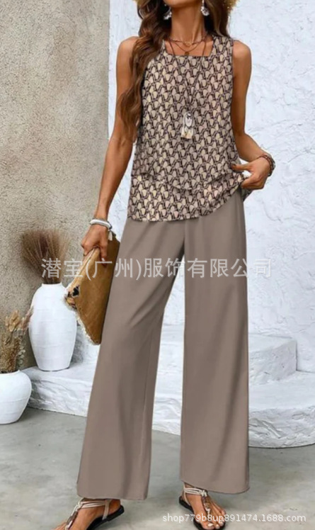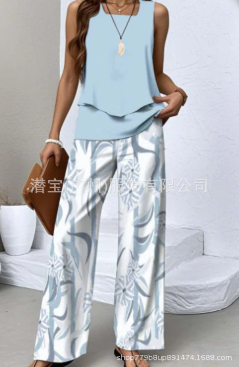 2025 спот новая трансграничная внешняя торговля Европейская и американская женская одежда без рукавов двойной жилет брюки набор из двух частей