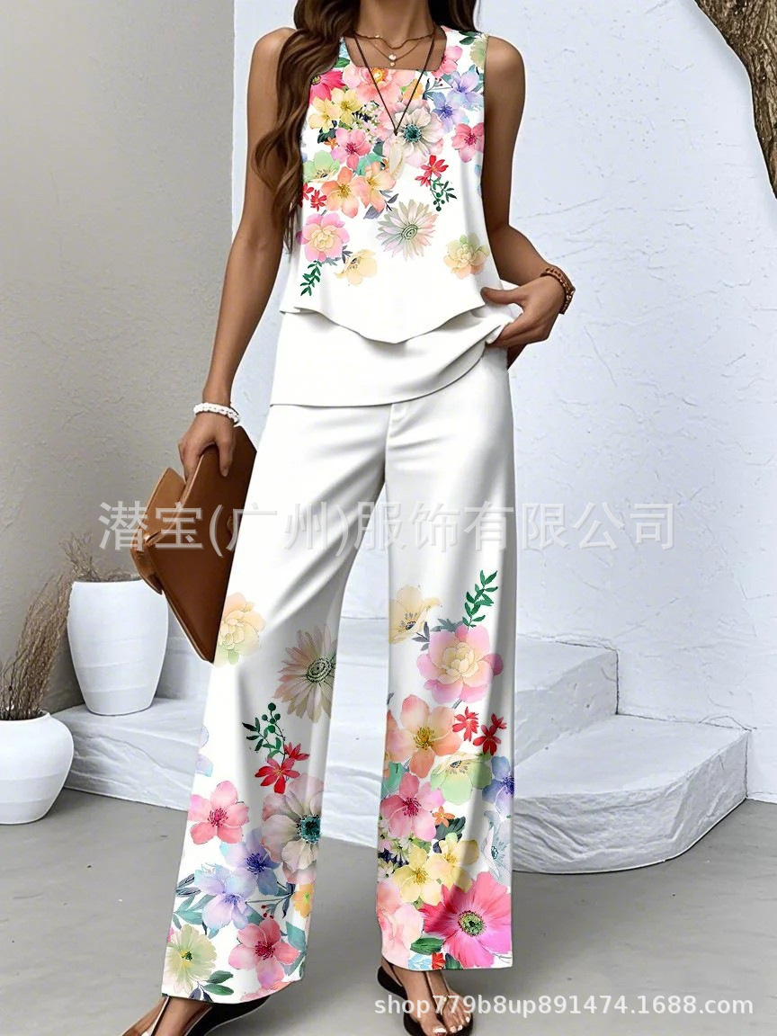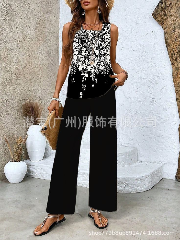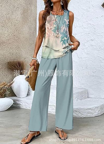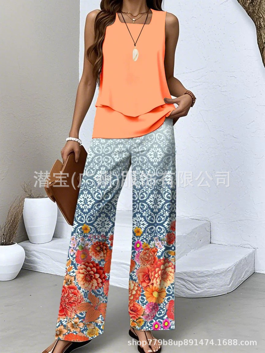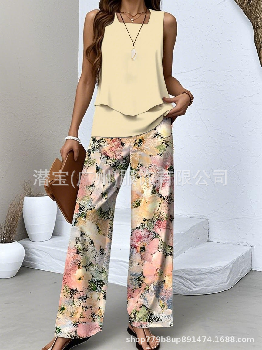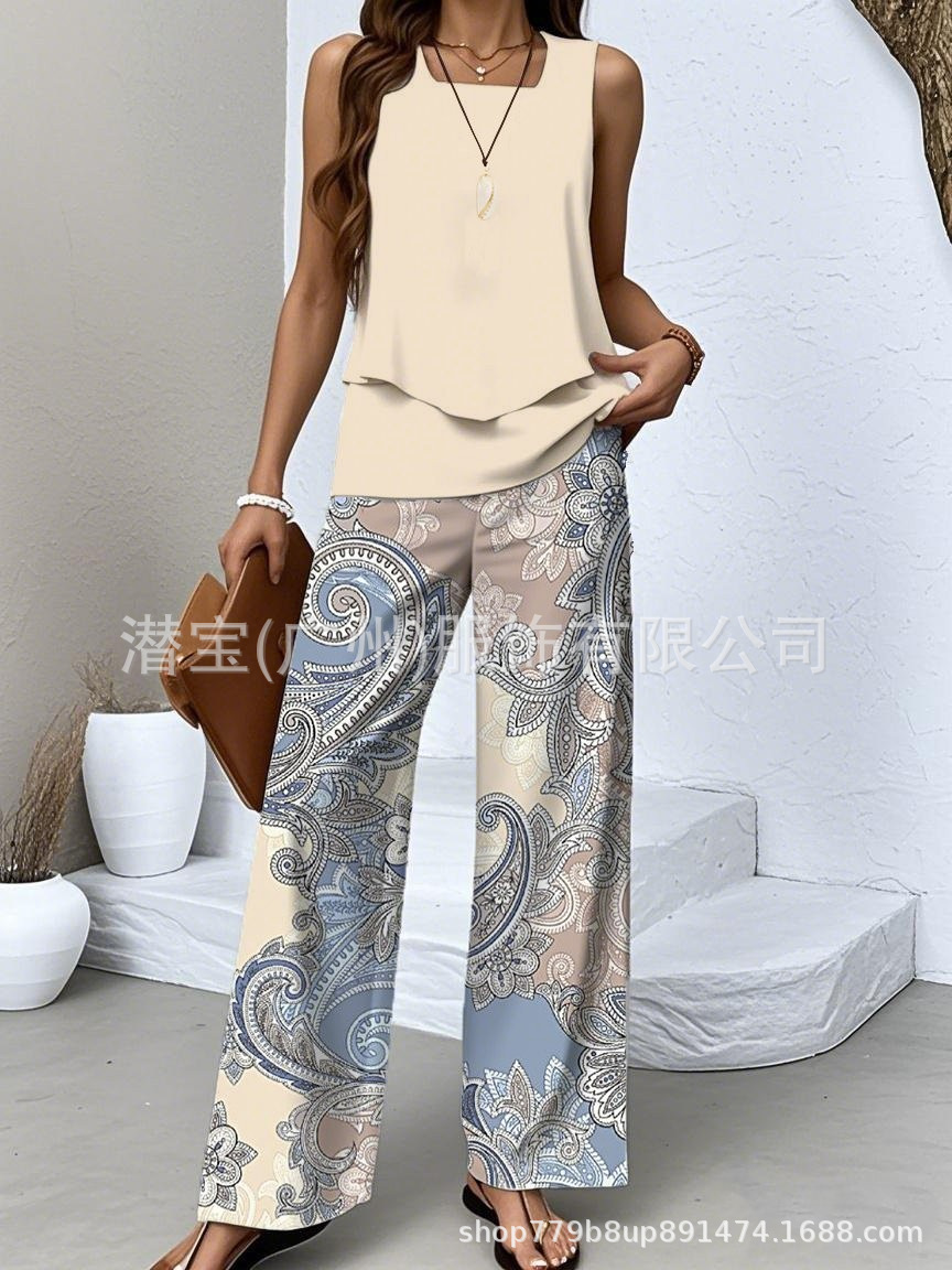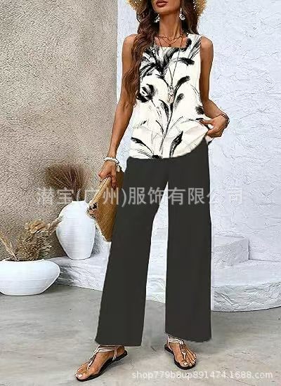 2025 спот новая трансграничная внешняя торговля Европейская и американская женская одежда без рукавов двойной жилет брюки набор из двух частей