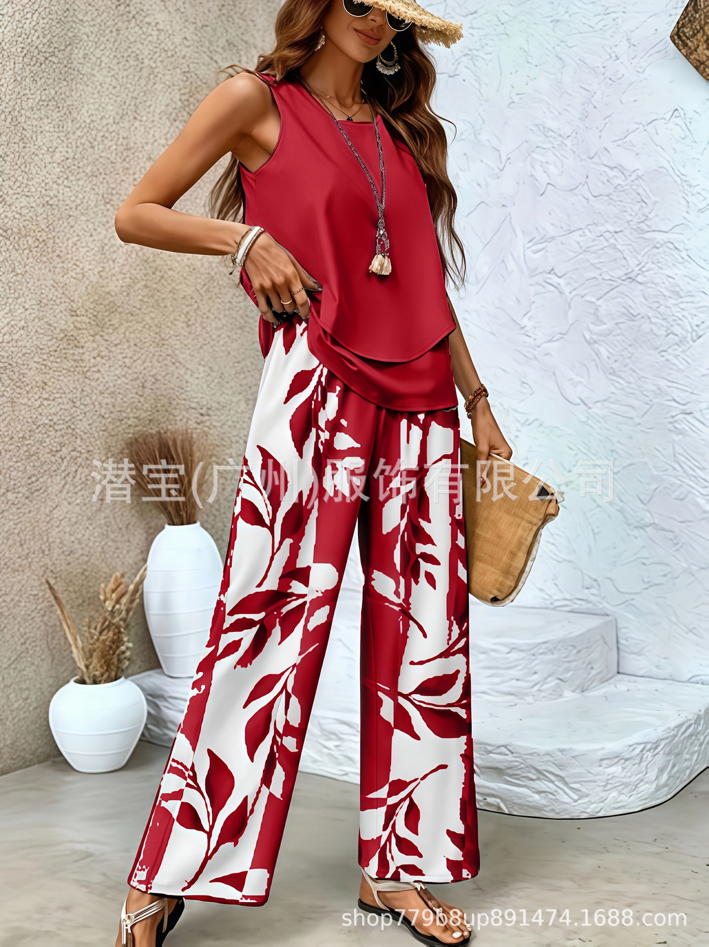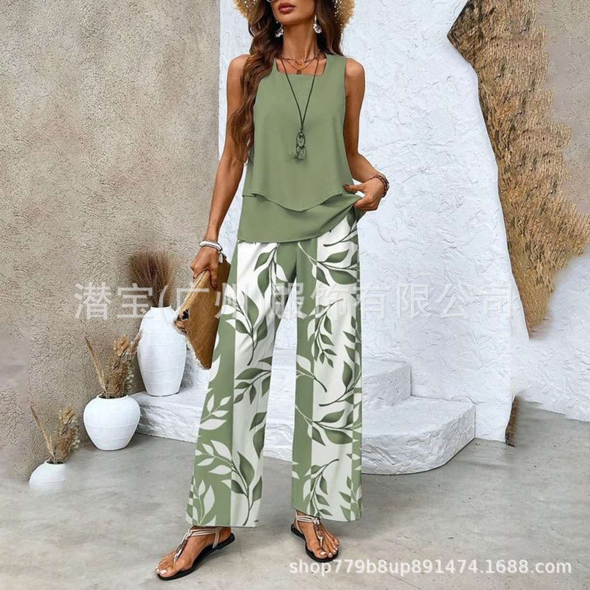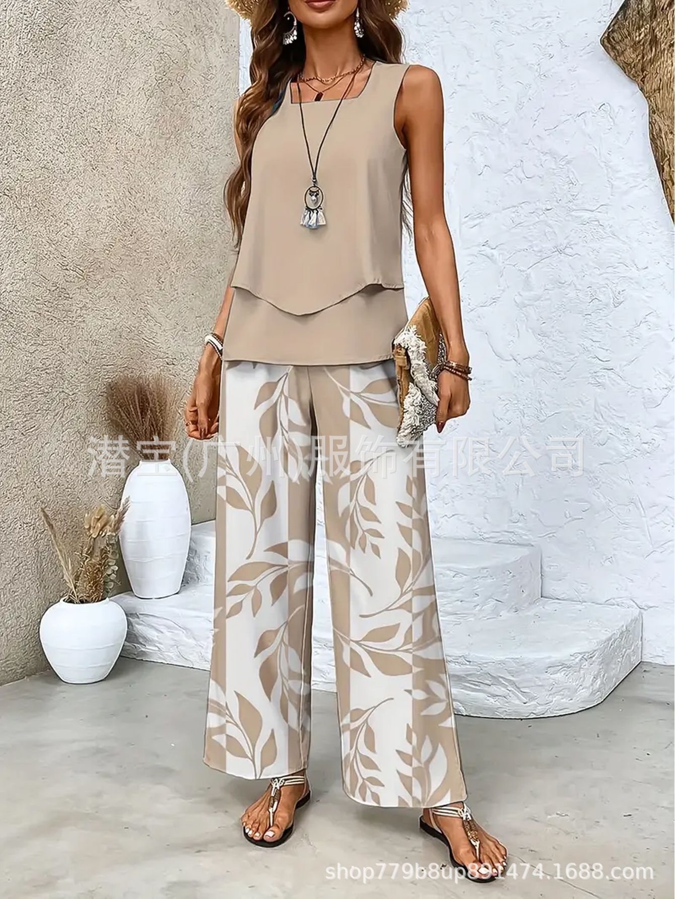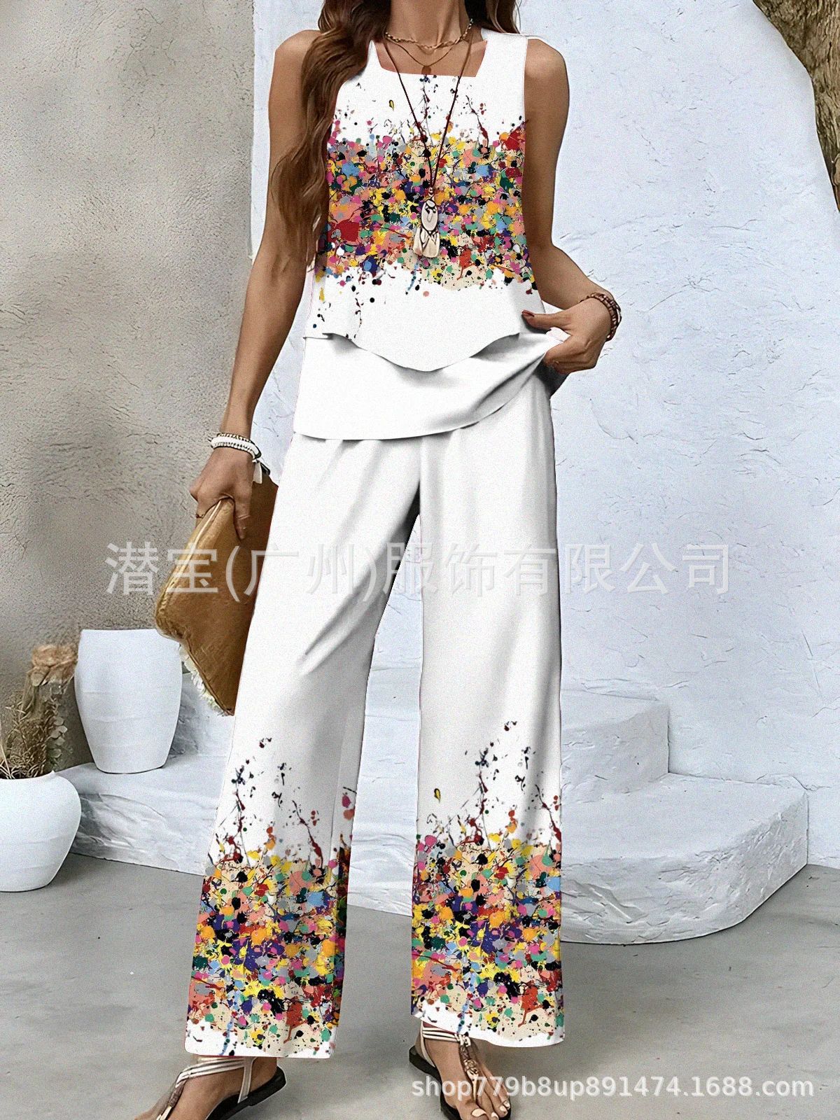 2025 спот новая трансграничная внешняя торговля Европейская и американская женская одежда без рукавов двойной жилет брюки набор из двух частей