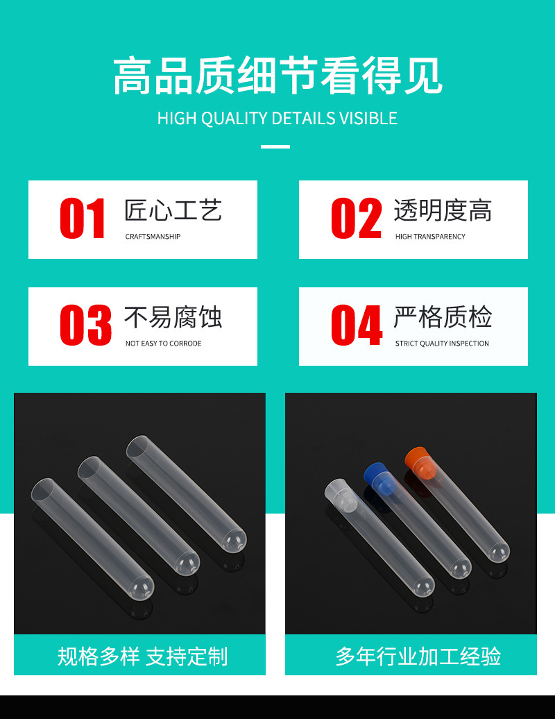 Одноразовая пластиковая пробирка, пробирка без полипропилена с крышкой, прозрачная жесткая пробирка, пластиковая пробирка для химических экспериментов