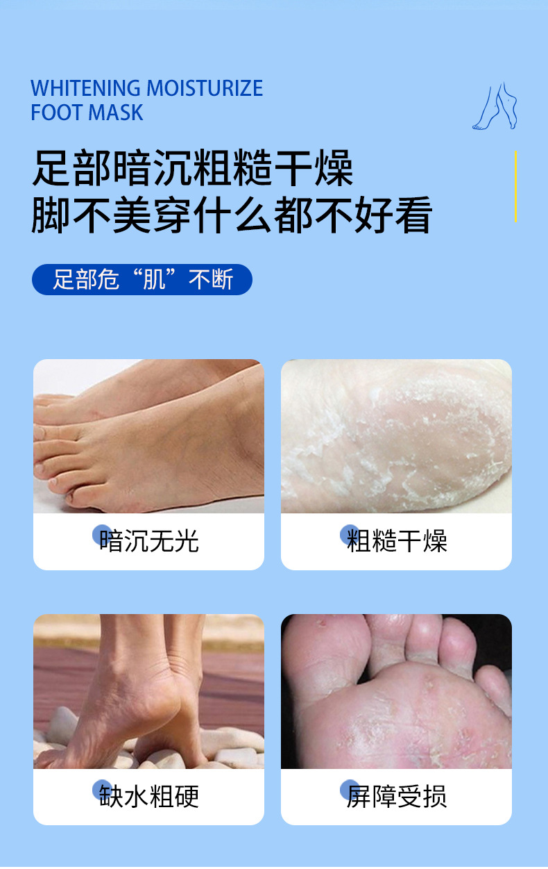 Маска для ног для отбеливания и смягчения кожи, увлажнения и питания, улучшения состояния огрубевшей и огрубевшей кожи, предотвращения трещин на пятках, уход за ногами.