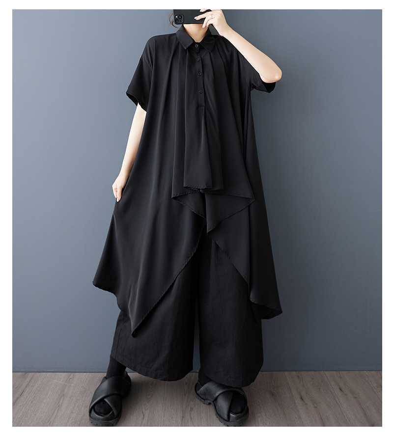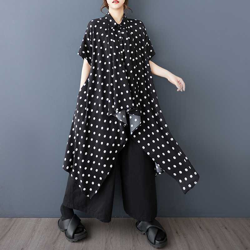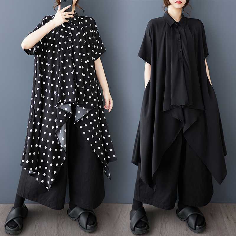 Настоящая летняя новая модная плиссированная шифоновая рубашка в европейском и американском стиле, свободный утягивающий топ средней длины большого размера нестандартной формы