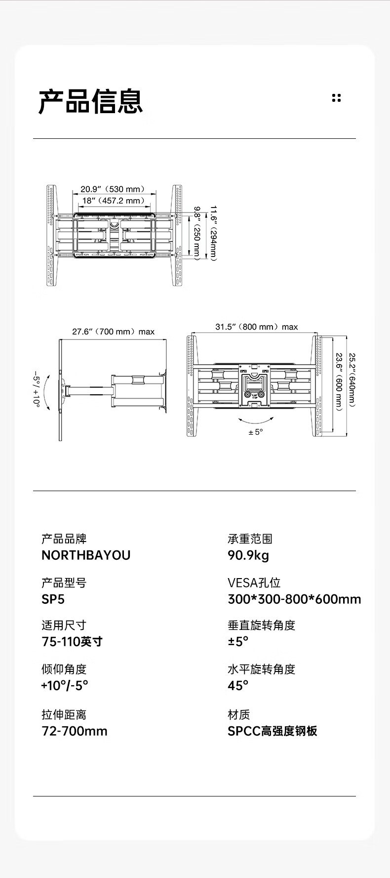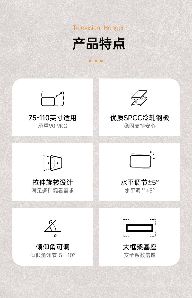NB SP5 75/85/98/ 110inch большой размер, эластичное универсальное новое настенное крепление для телевизора с длинной ручкой