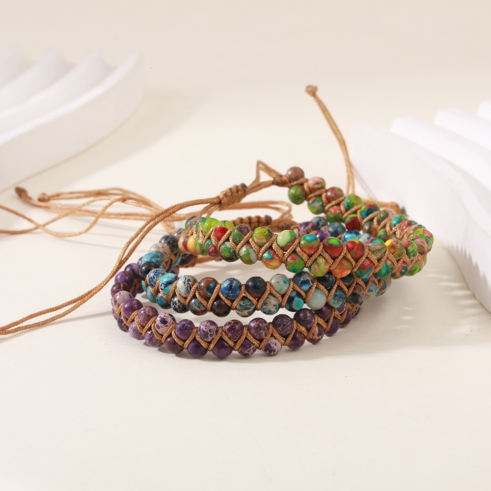 Новый императорский камень, двухслойные бусины, 4 мм, браслет ручной работы, браслет для йоги, креативный браслет, красочный
