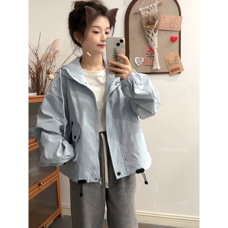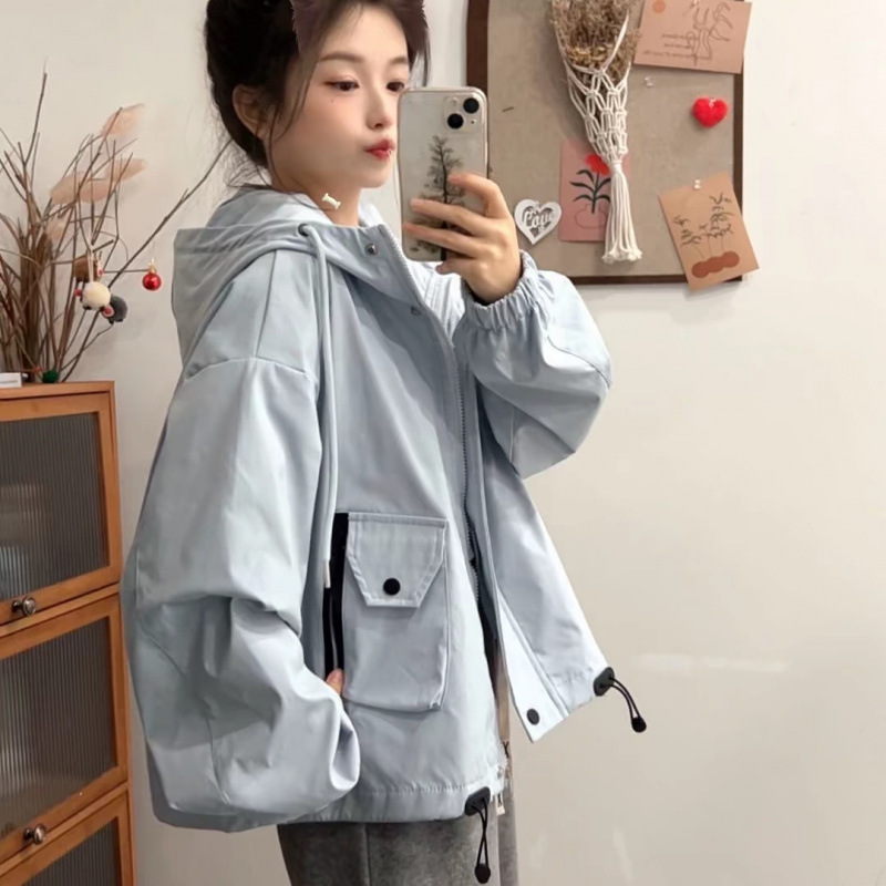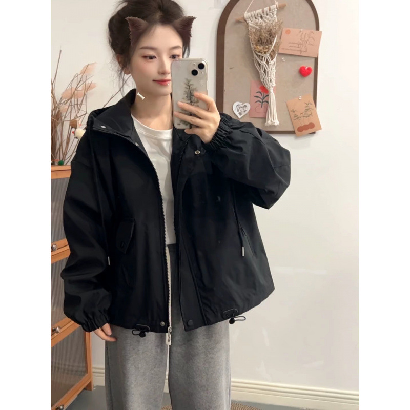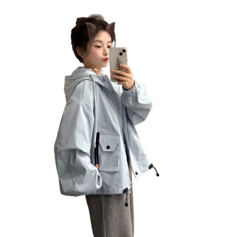 Куртка-куртка Весна и Осень Досуг 2025 Короткая свободная мода дикая куртка с капюшоном Короткая одежда для женщин