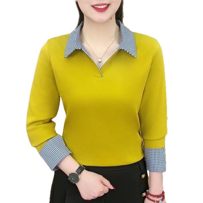 2025 новые весенние лацканы с длинными рукавами мама нижняя рубашка женская ретро американский свободный повседневный топ