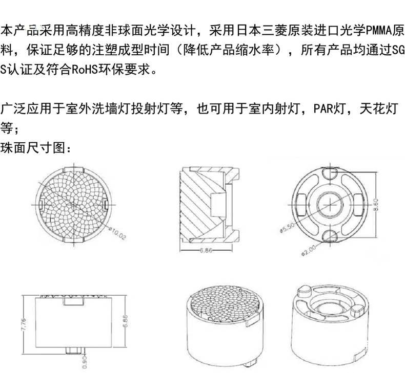 Объектив CREE-XPE XPG с кронштейном Φ10 мм, полосками и поверхностью из бисера, светодиодный объектив 3030, объектив 3535