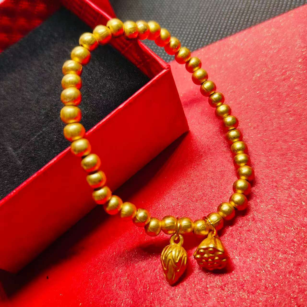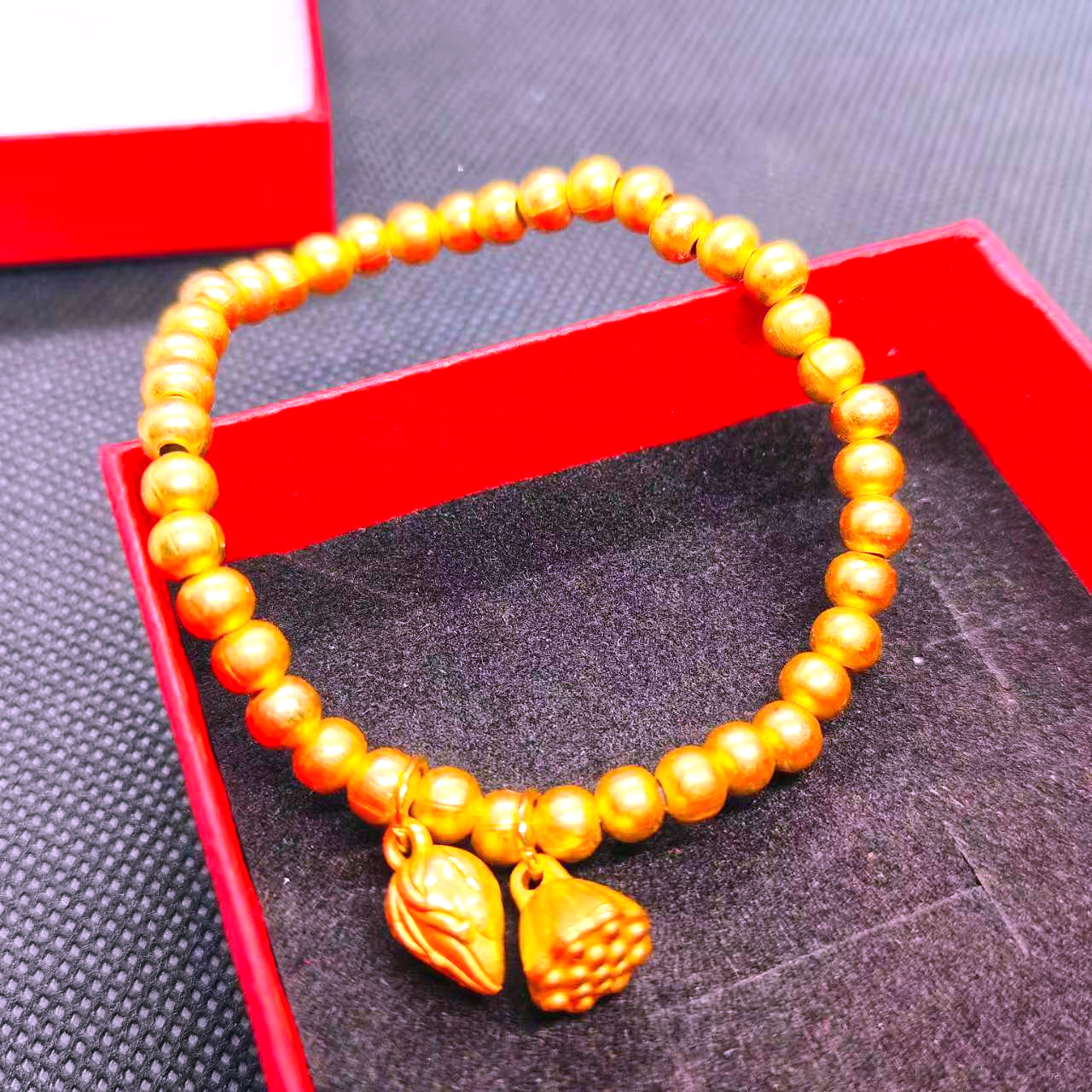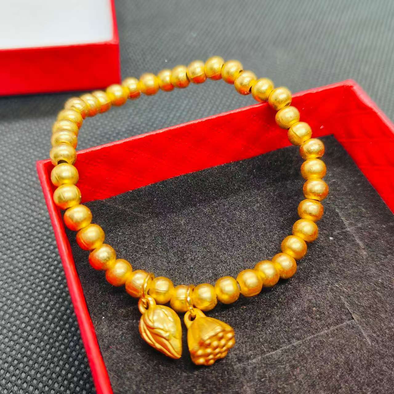 Вьетнамский браслет из песочного золота для женщин, французский медный браслет в стиле ретро, долговечное сохранение цвета, имитация золотого браслета невесты для двух поколений счастья.