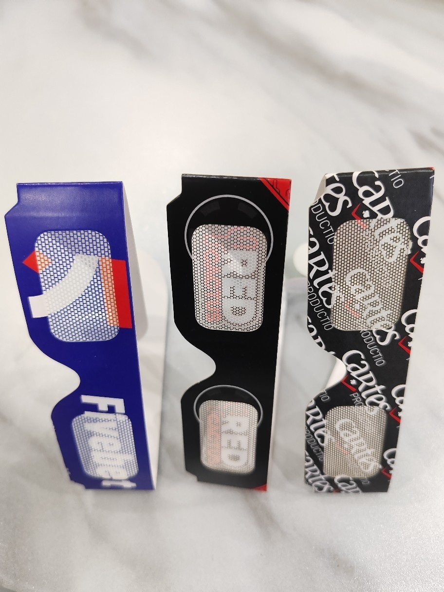 Одноразовые бумажные карты, красные и синие 3D-очки, дифракционные фейерверки, спектр, спецэффекты, сердце