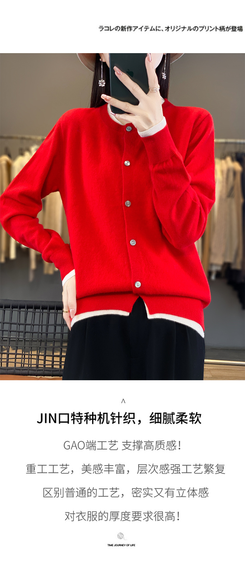 Фальшивый двухслойный свитер из чистой шерсти, кардиган из 100% шерсти, оптовая продажа от производителя, женский весенний вязаный свитер с круглым вырезом, кардиган.