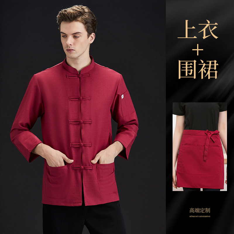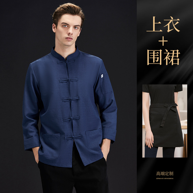 Рабочая одежда для ресторанов и общественного питания с новым логотипом китайского ресторана Dehua в китайском стиле, официант в китайском стиле в чайной лавке.