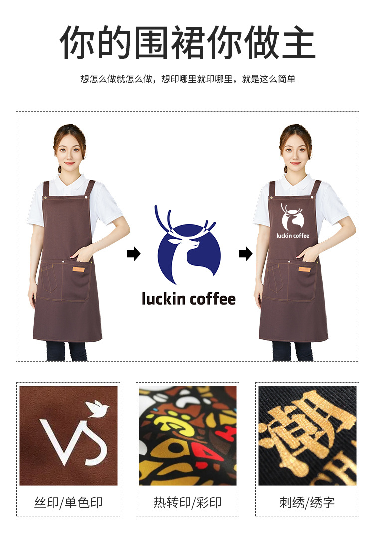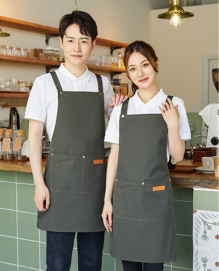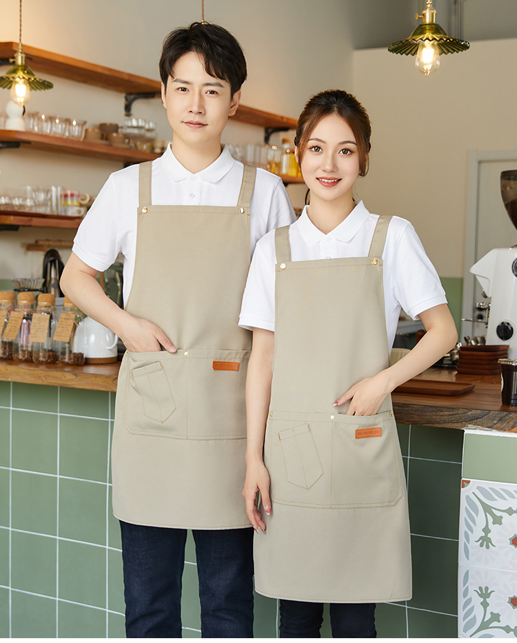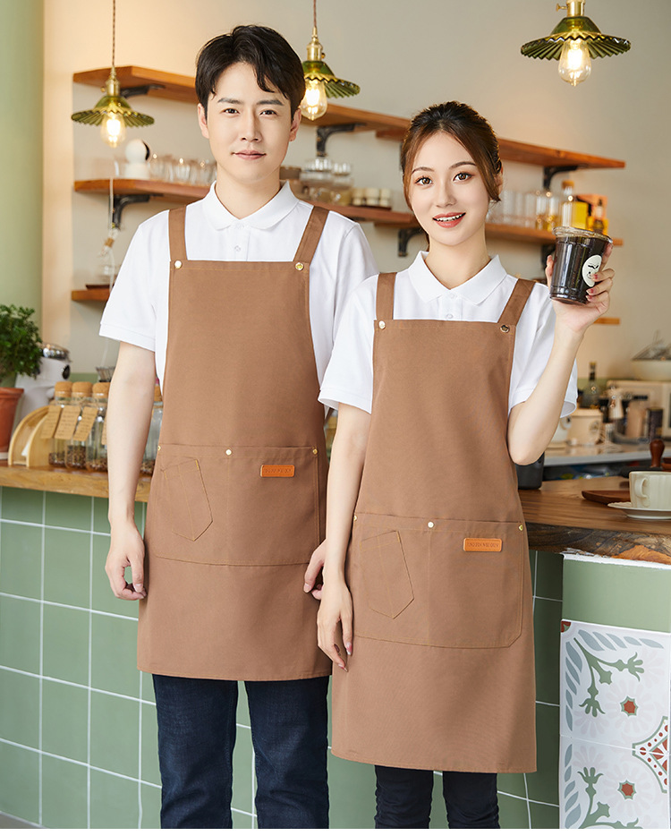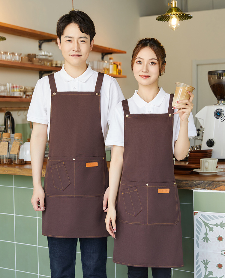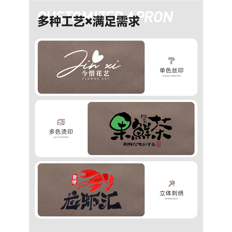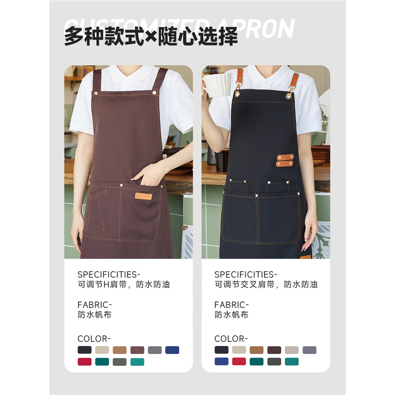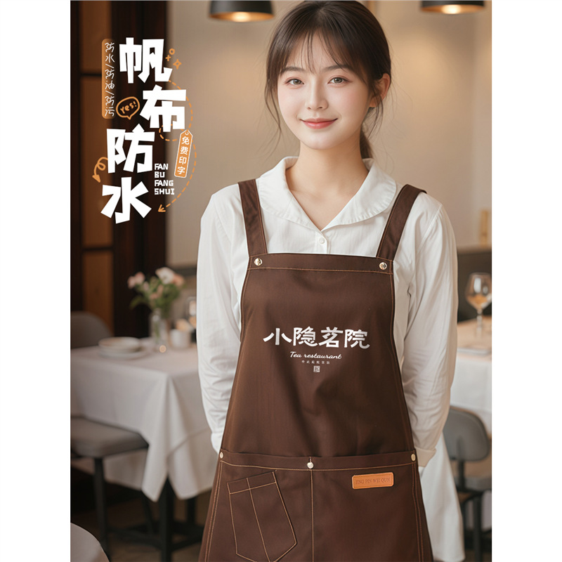 Фартук для официанта из водонепроницаемого холста с логотипом, масляным пятном, кухонный фартук с принтом для магазина молочного чая, рабочая одежда, фартук для отеля, номер