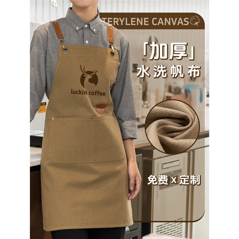 Рабочая одежда официанта с принтом логотипа супермаркета, холст, фартук для кофе Luckin, магазин чая с молоком, утолщенный принт для общественного питания