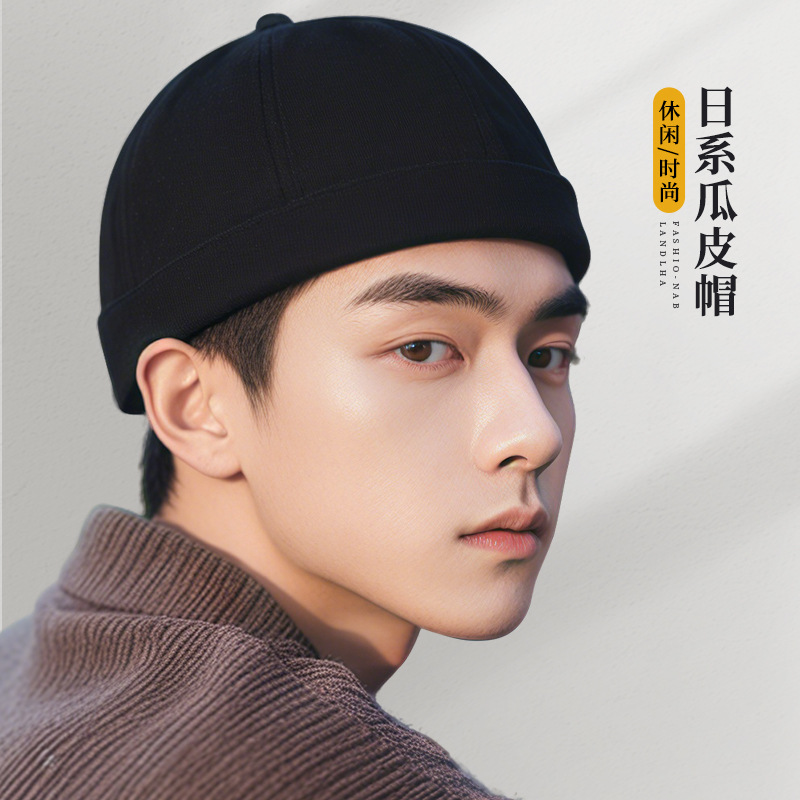 Шляпа из кожи дыни в японском стиле, новая круглая верхняя всесезонная женская американская шляпа из чистого хлопка без поля в стиле ретро, красивая мужская большая голова