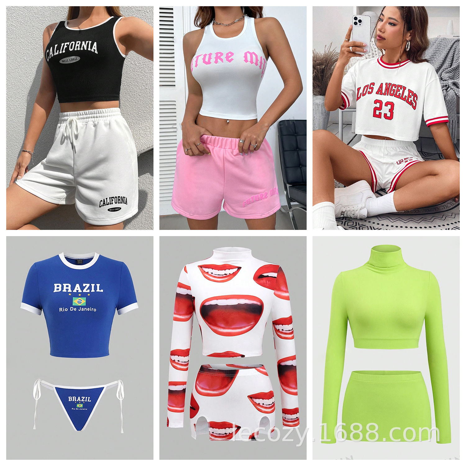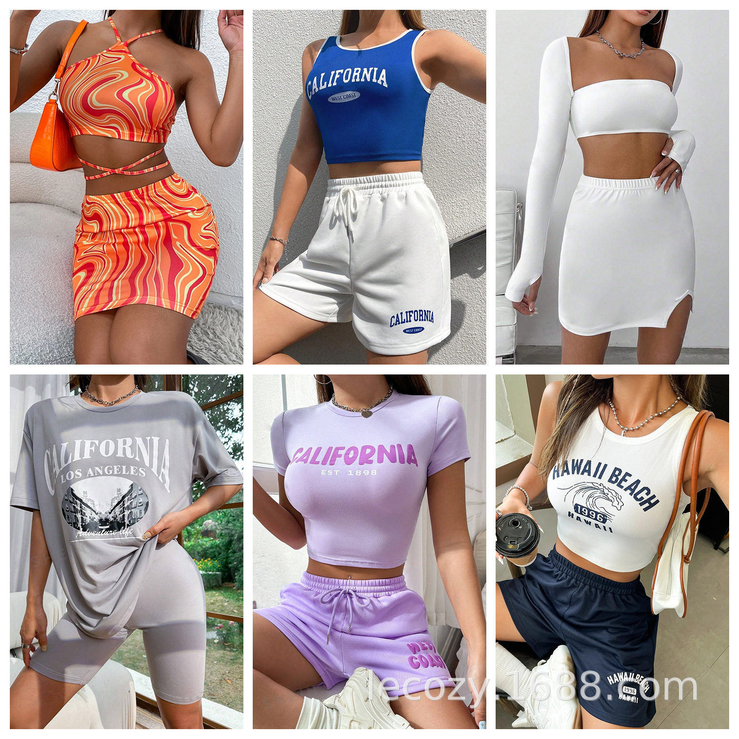 Женский костюм Shein для внешней торговли, распродажа на Amazon, повседневный топ, шорты, юбка, комплект из двух предметов, оптовая продажа