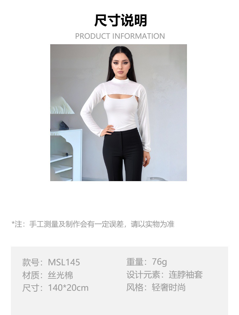 2025 Hui с рукавами плеча для шали мода из шелкового хлопка с шеей рукава нижняя рубашка нижняя рукава женская