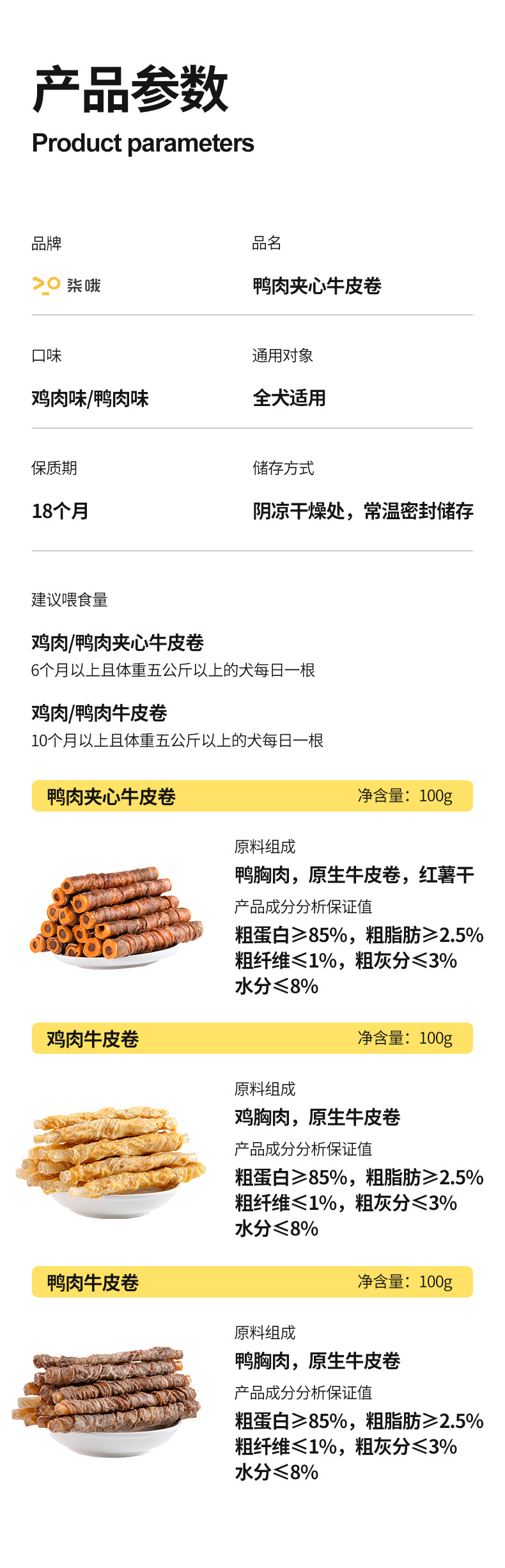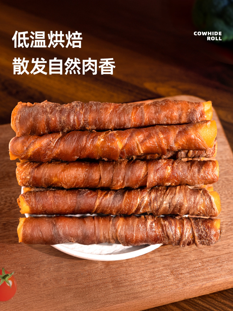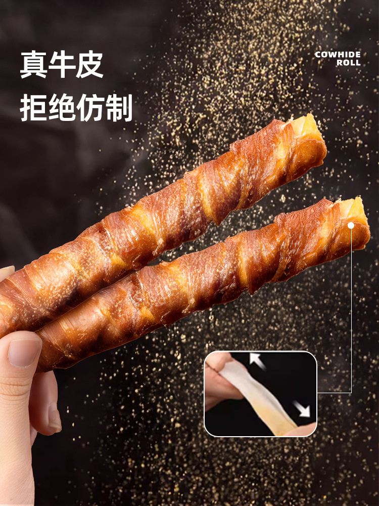 Рулеты из кожи курицы и говядины 13см [100г, около 12 шт.]; Рулет из утиного мяса с говядиной 13см [100г, около 12 шт.]; Рулет из коровьей кожи с курицей 16см [150г, около 3 шт.]; Сэндвич с курицей и говядиной в рулете 8см [200г, около 9 шт.]; Мясо утки в булочке с говяжьей кожей 16см [150г, около 3 шт.]; Сэндвич с утиным мясом, рулет из говяжьей кожи 8 см [200 г, около 9 шт.]