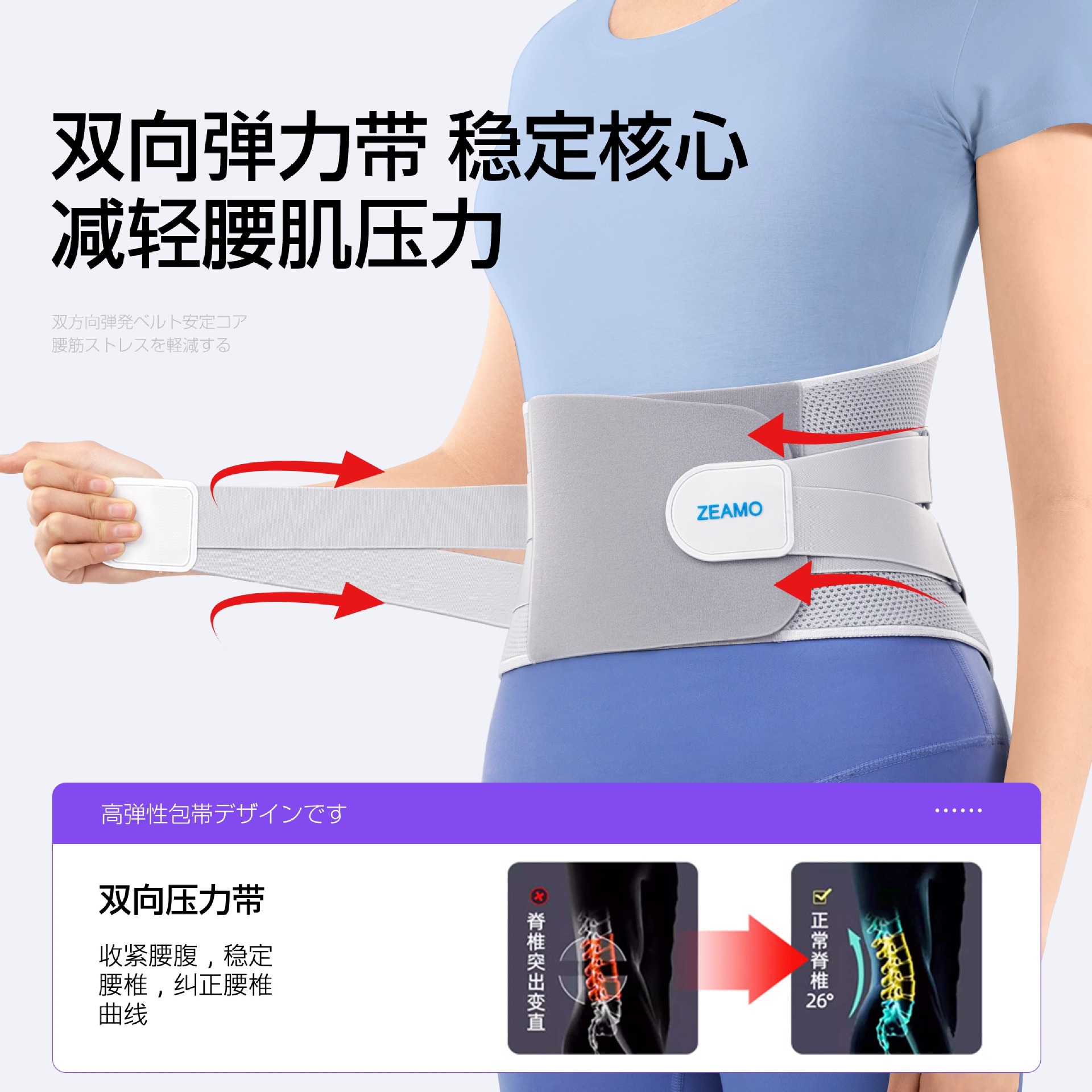 Ремень фиксации поясничного отдела позвоночника (сетчатая поясничная опора ZEAMO, модель с четырьмя давлениями)
