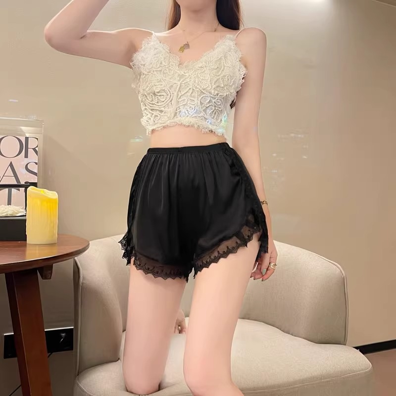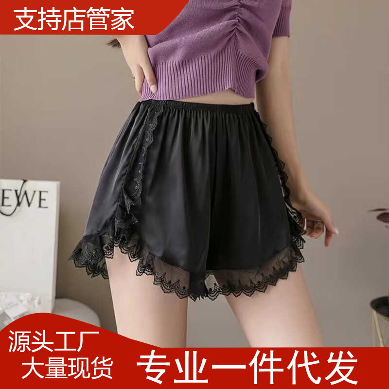 Летние шелковые защитные брюки 2025 года, женские, антипрозрачные, не скручивающиеся, с кружевом, можно носить свободно, тонкая подкладка, домашние брюки