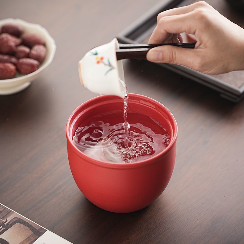 Красная маленькая баночка для остатков чая [с фильтром]; Красная маленькая баночка для остатков чая; Бак для остатков красного чая [с фильтром]; Банка с остатками красного чая