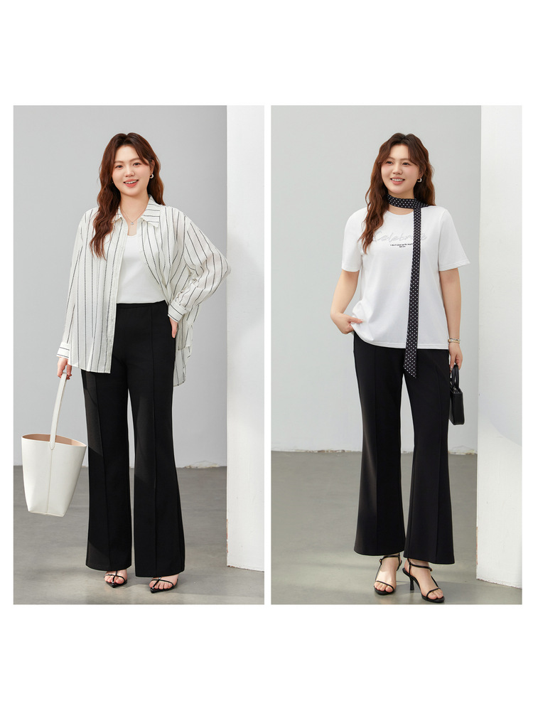Удобные универсальные расклешенные брюки для похудения с эластичной резинкой на талии, женская одежда больших размеров для пышных женщин, весна 2025, новый стиль