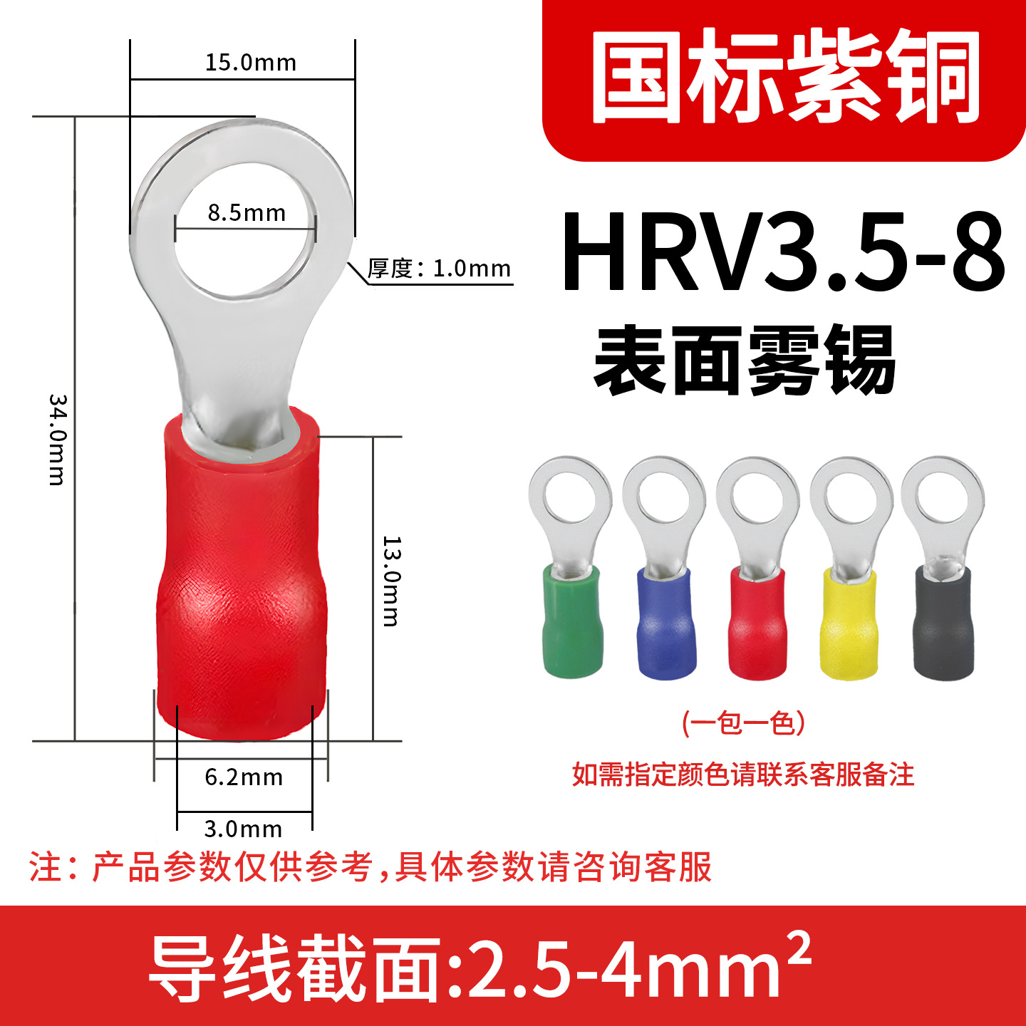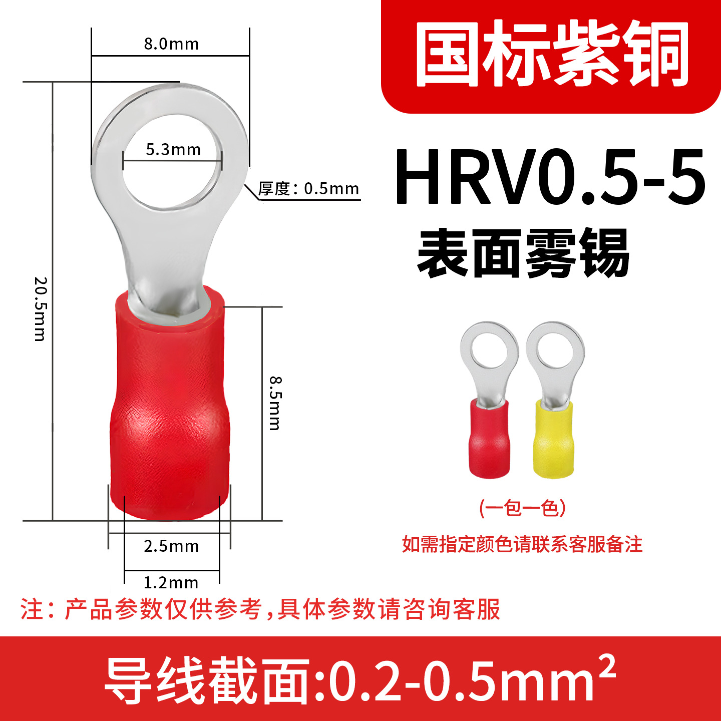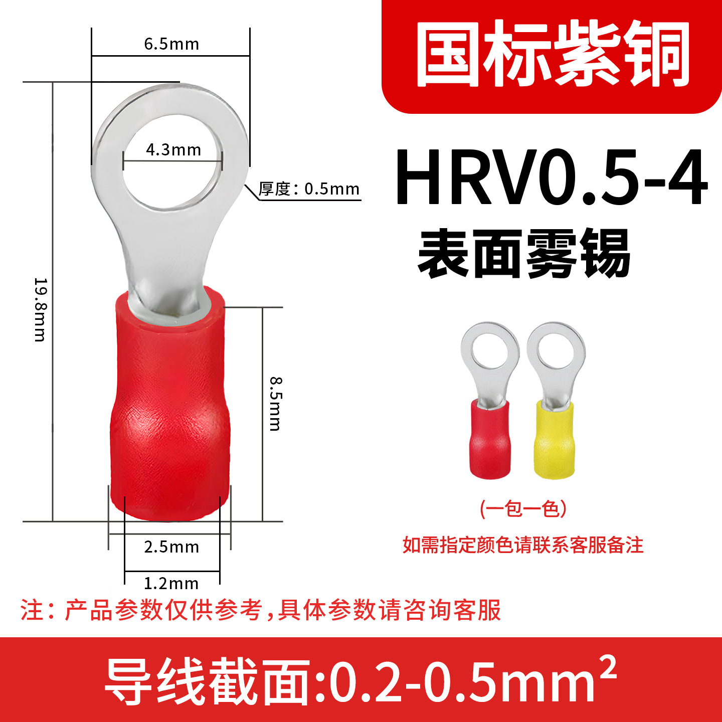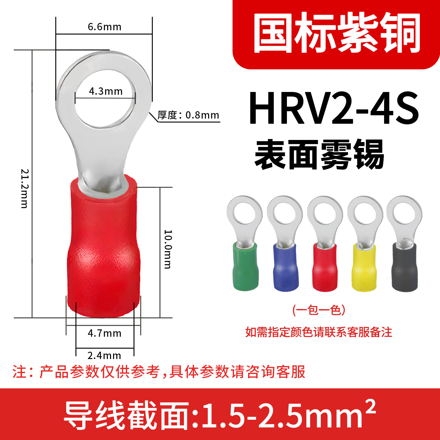 Клемма круглая изолированная CNXI Huaxi Technology RV1.25, холоднопрессованная, тип О, по ГОСТ, для медных проводов, заводская.