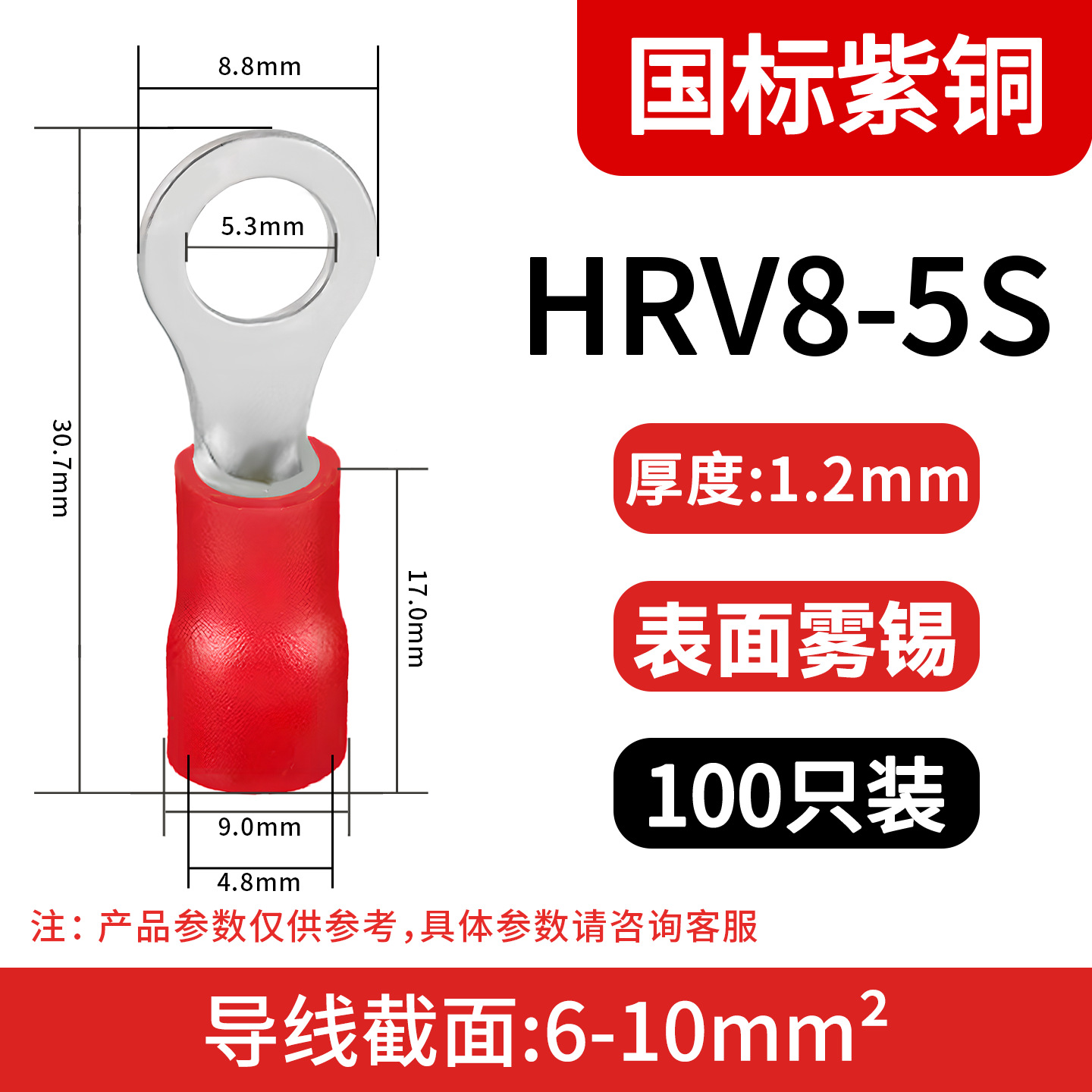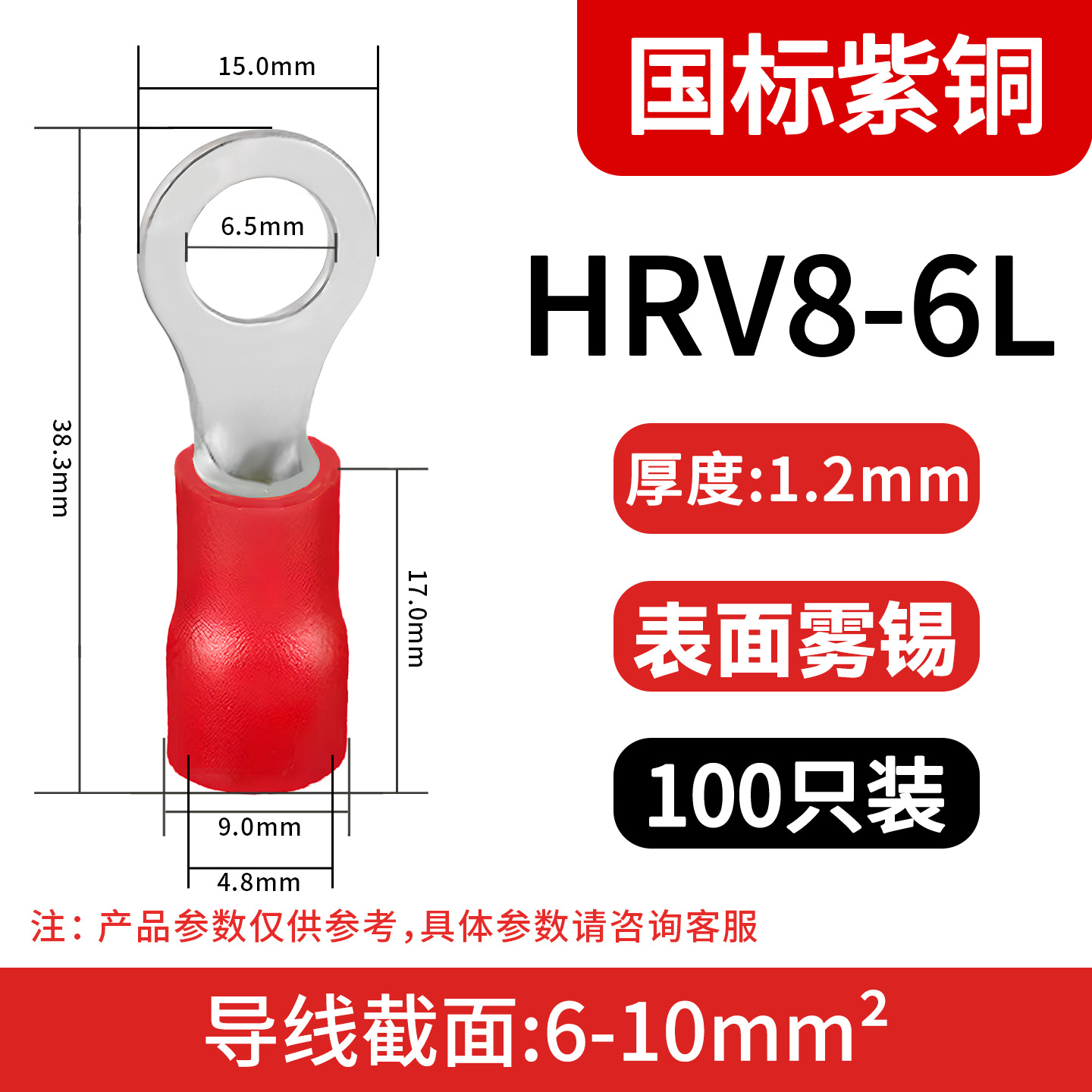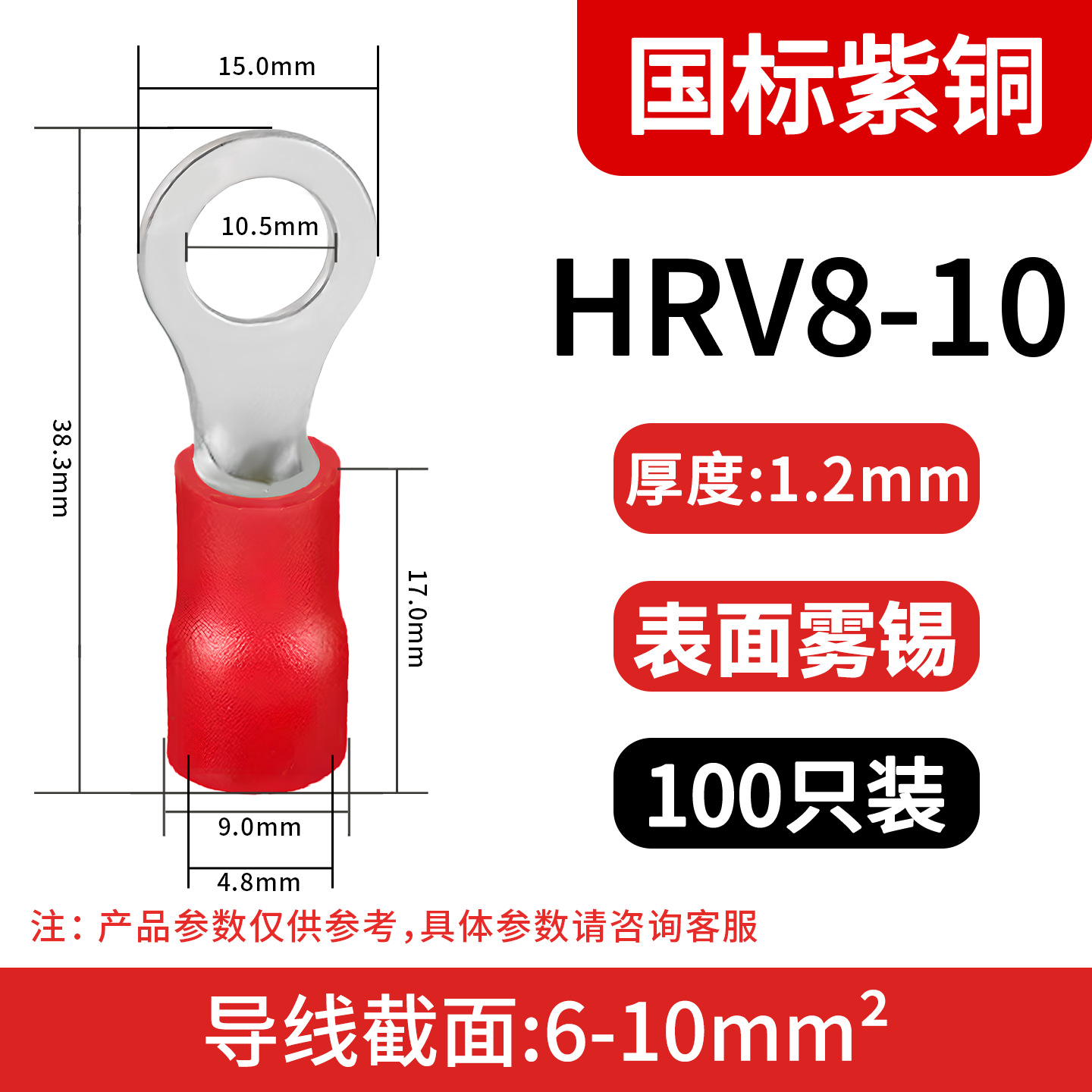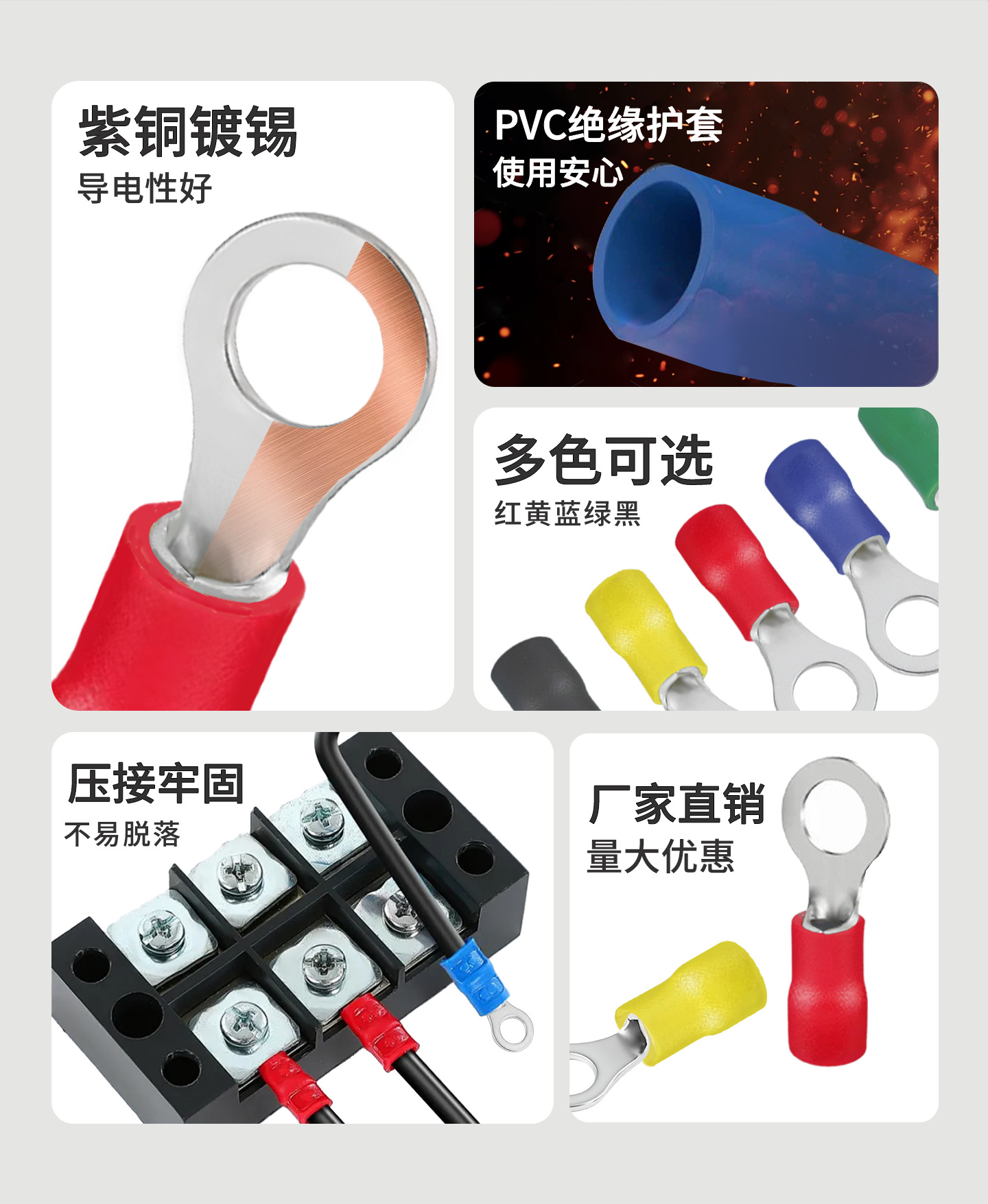 Клемма круглая изолированная CNXI Huaxi Technology RV1.25, холоднопрессованная, тип О, по ГОСТ, для медных проводов, заводская.