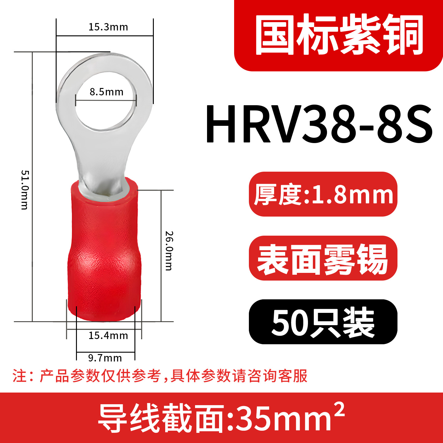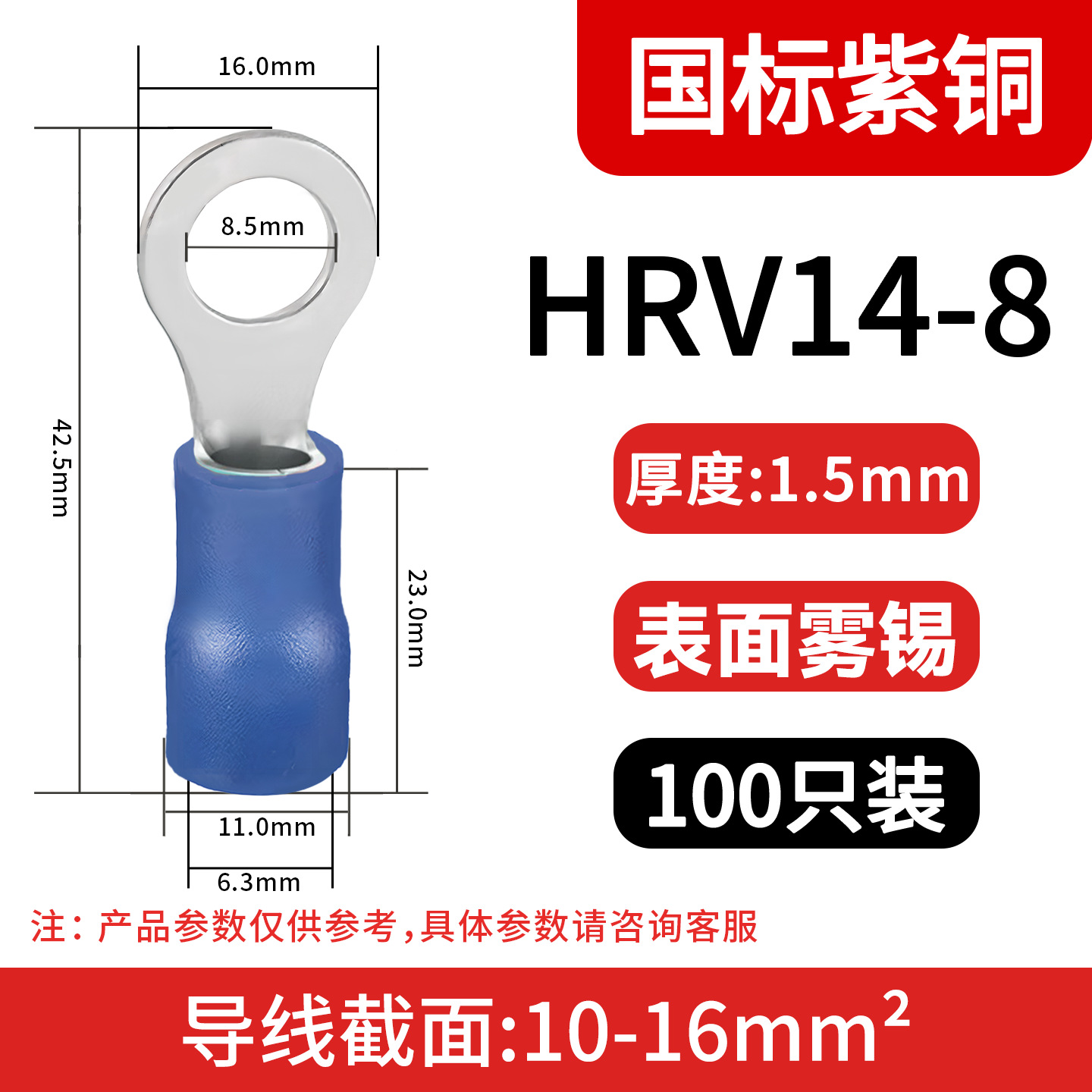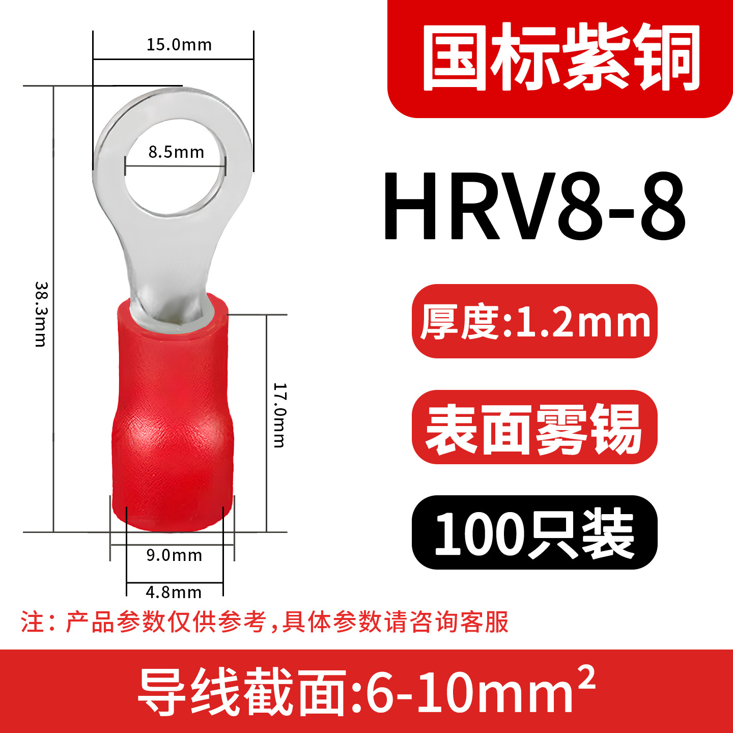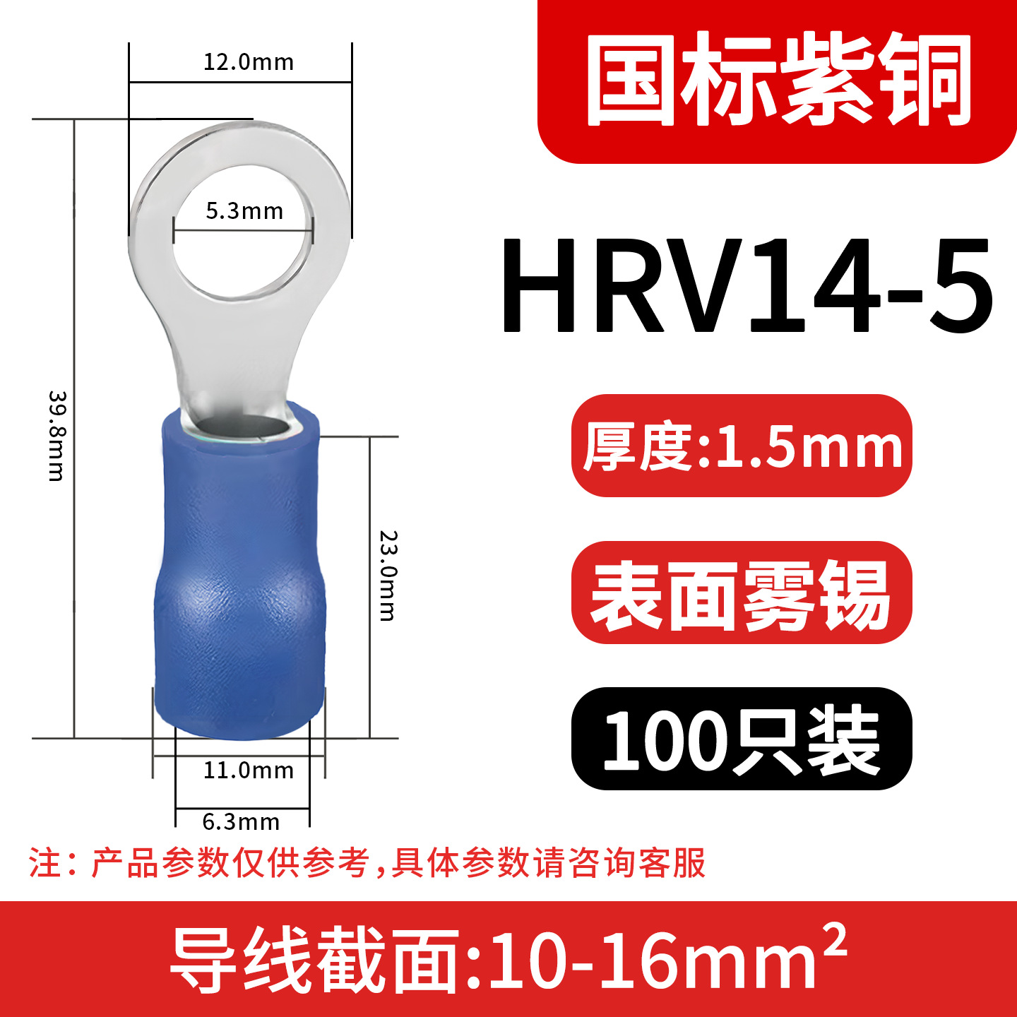 Клемма круглая изолированная CNXI Huaxi Technology RV1.25, холоднопрессованная, тип О, по ГОСТ, для медных проводов, заводская.
