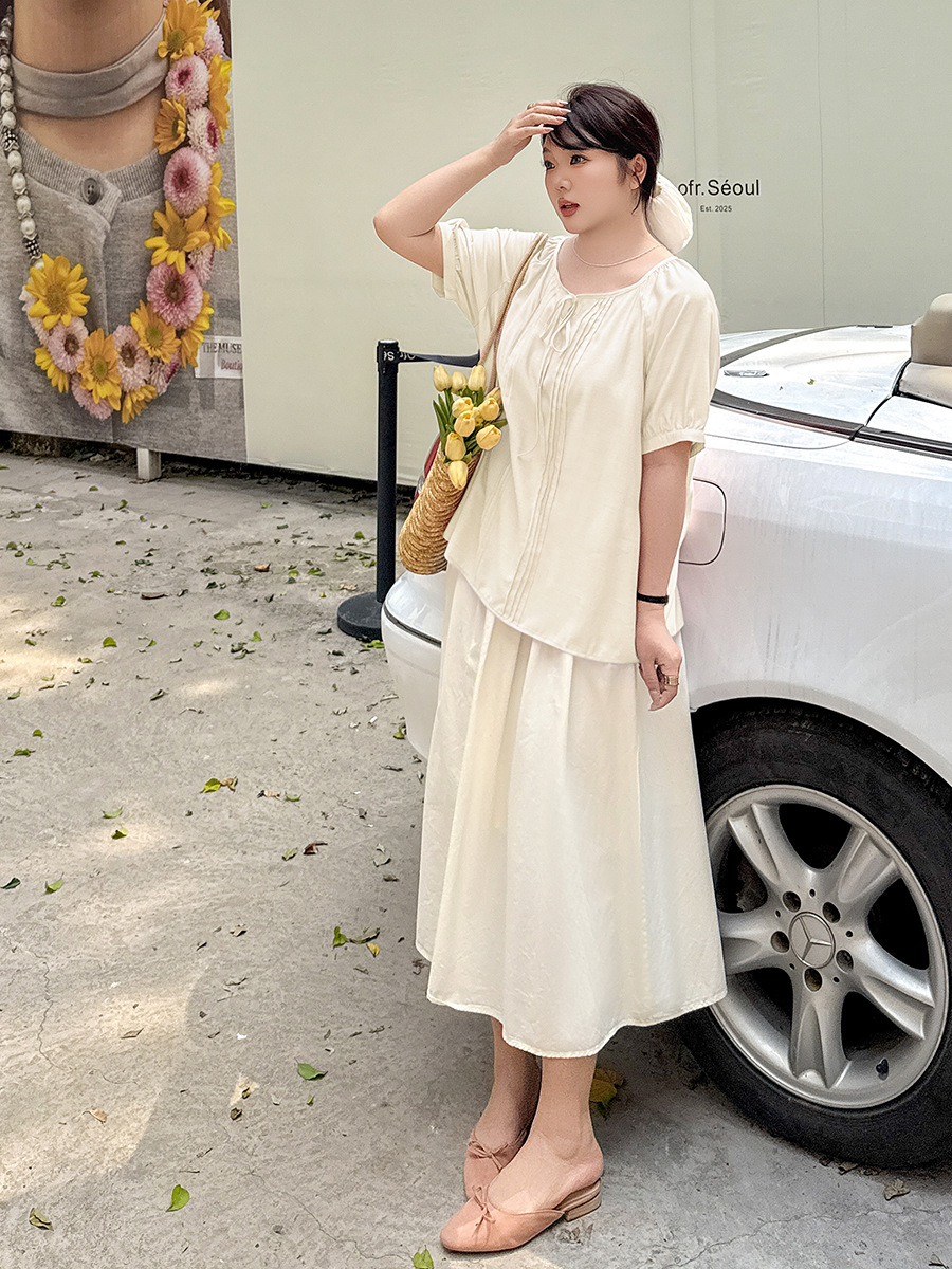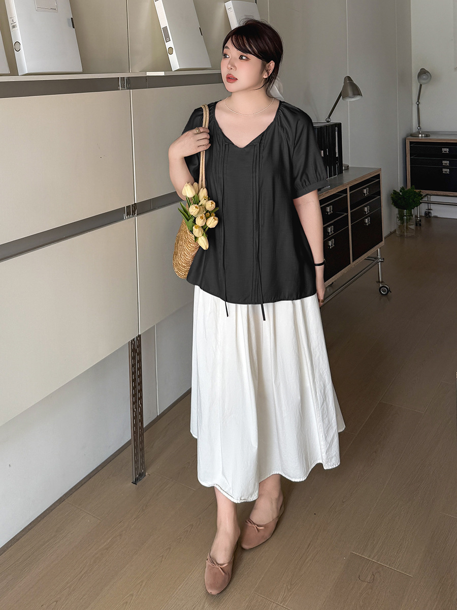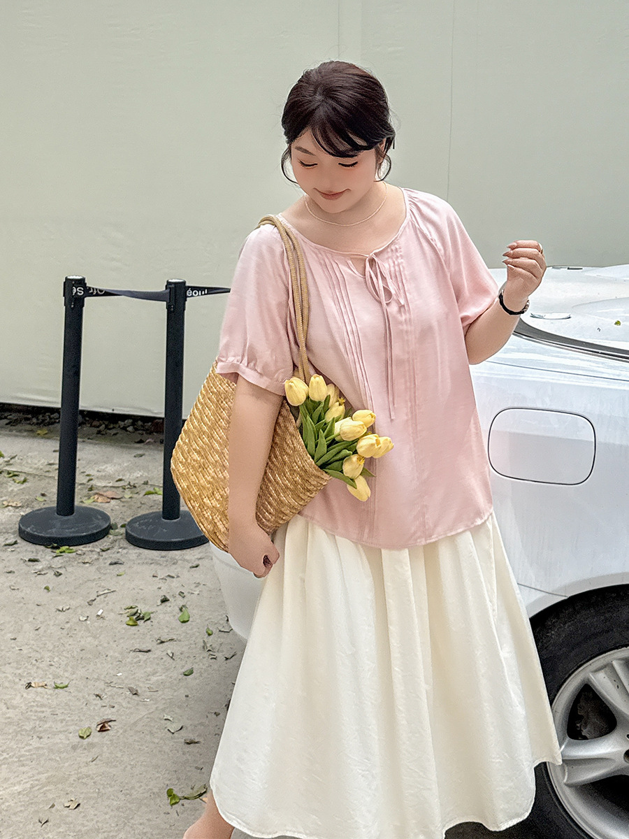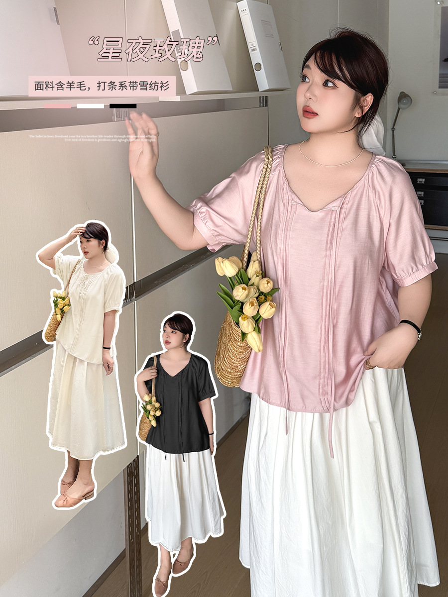 Шерстяная шнуровка с слегка морщинистым текстура шифоновая рубашка лето 2025 новый жирный мм свежий рыхлый топ 222109