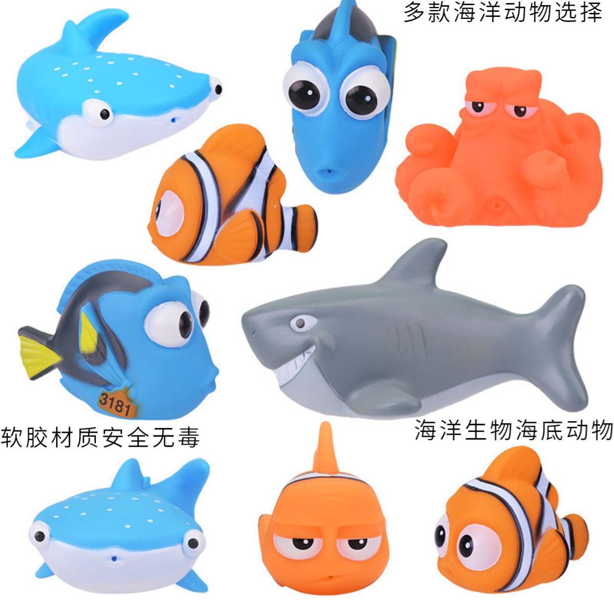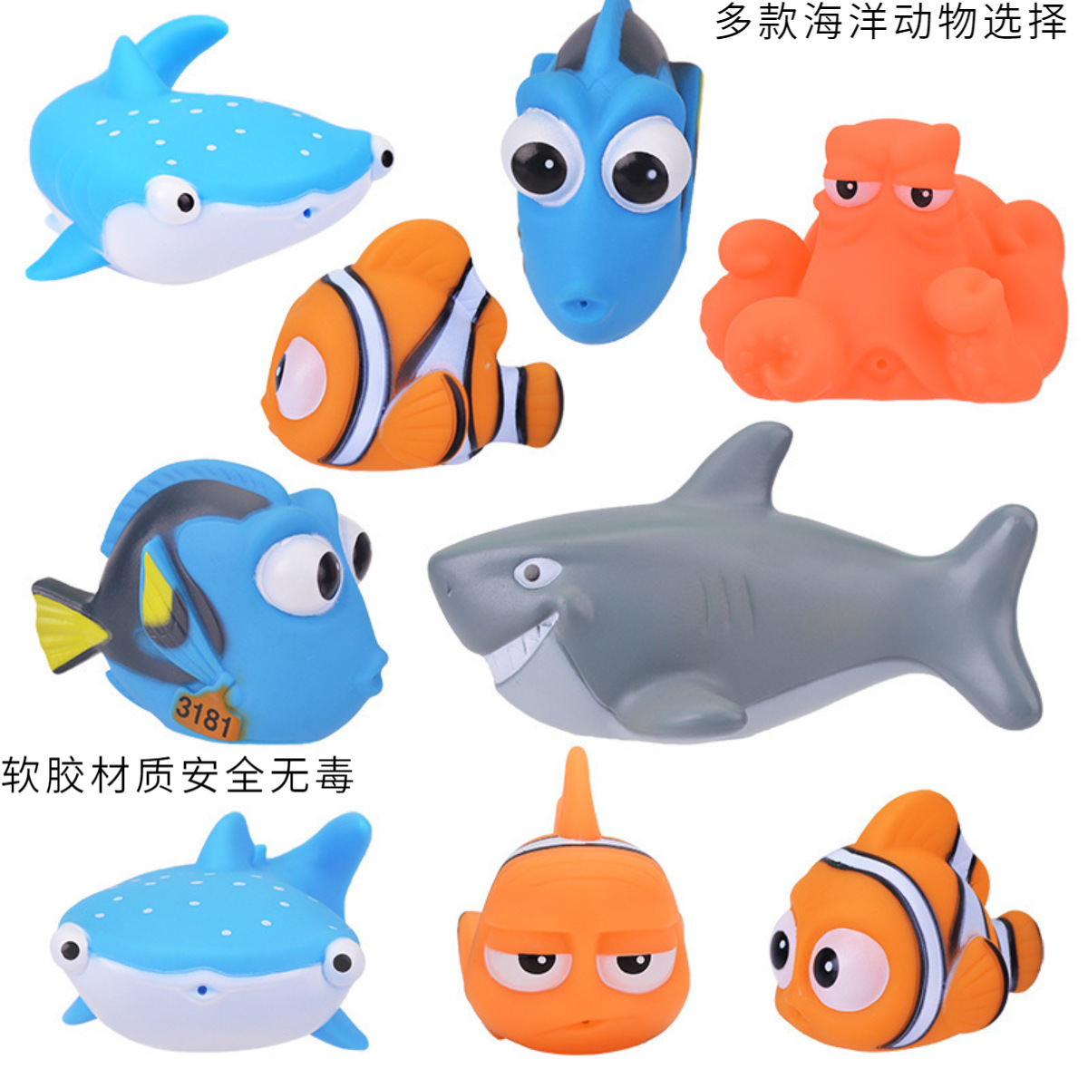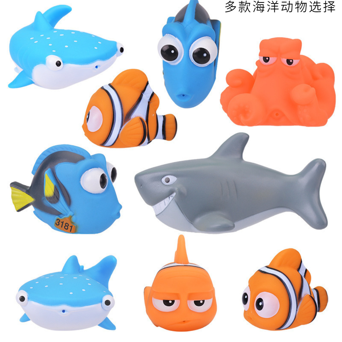 Водные игрушки, морские обитатели дна, рыба-клоун, акула, игрушки для ванны Rainimo, игрушки для ванной с распылением воды, пляжные игрушки, маленькая желтая утка, игрушки с морскими обитателями, мягкая резиновая жевательная акула Немо.