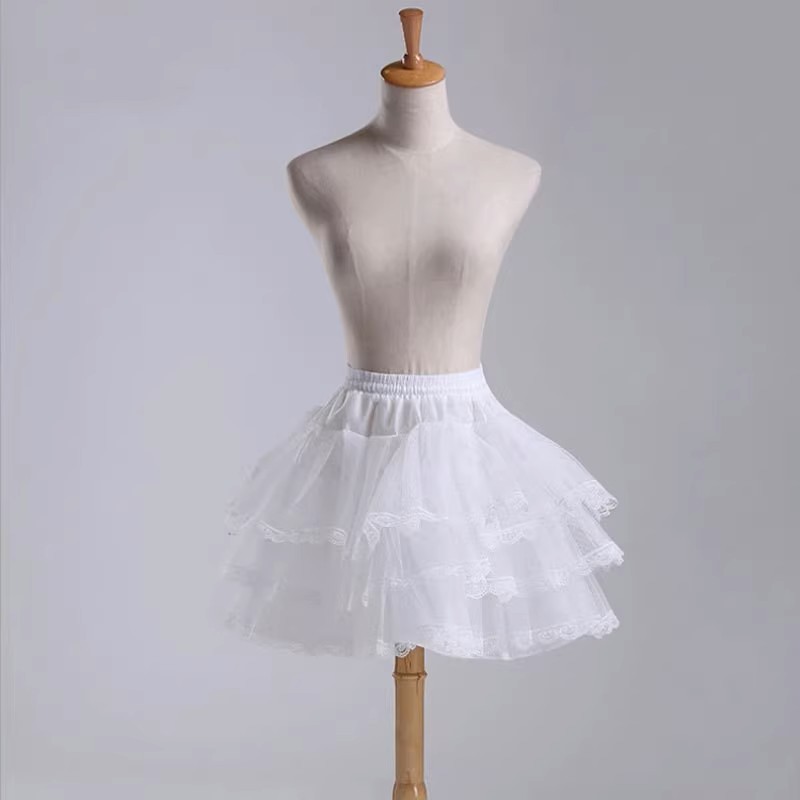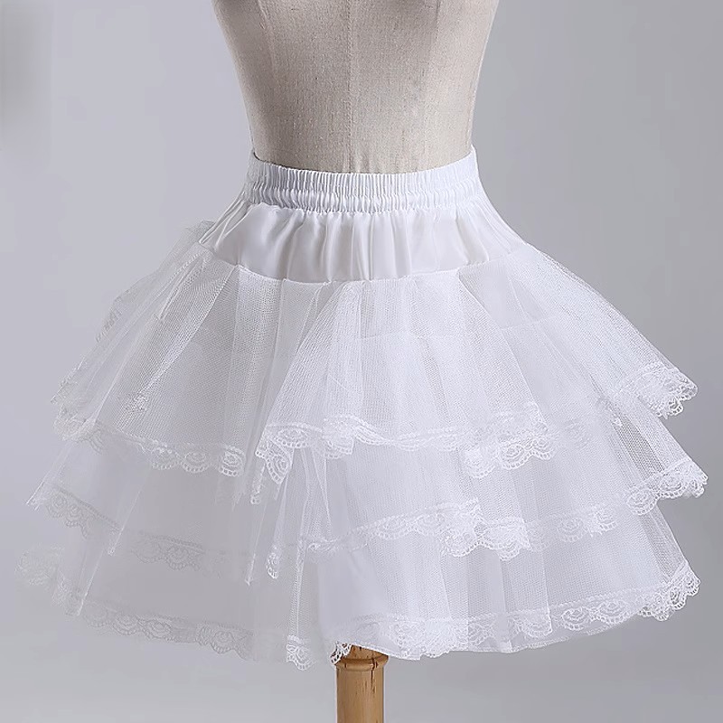 Трехслойный кружевной наряд горничной, юбка-пачка в стиле Лолиты, повседневная короткая юбка без костей, короткая юбка, короткое свадебное платье, поддерживающая юбка