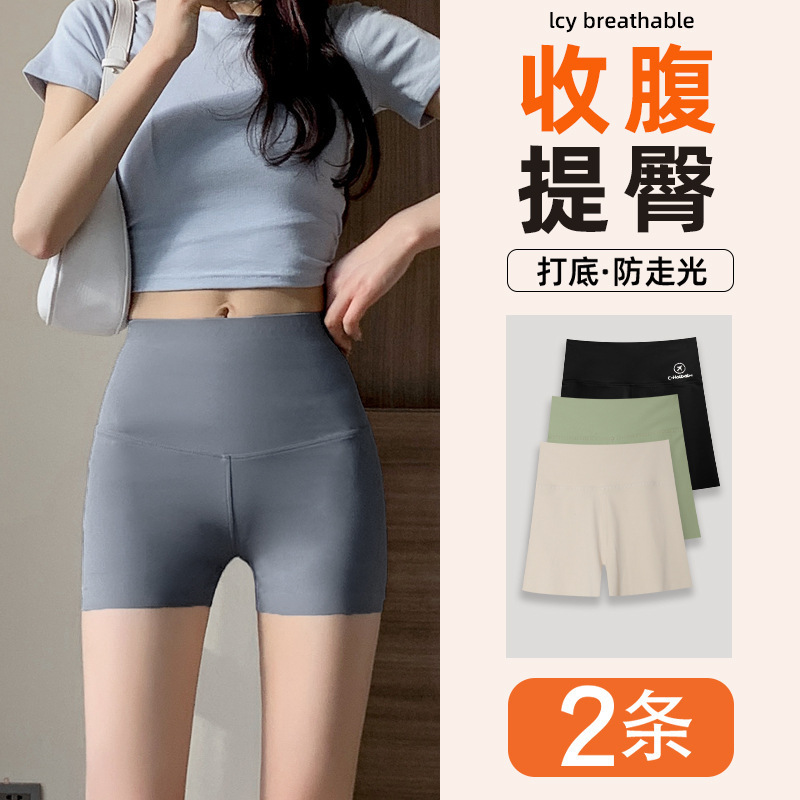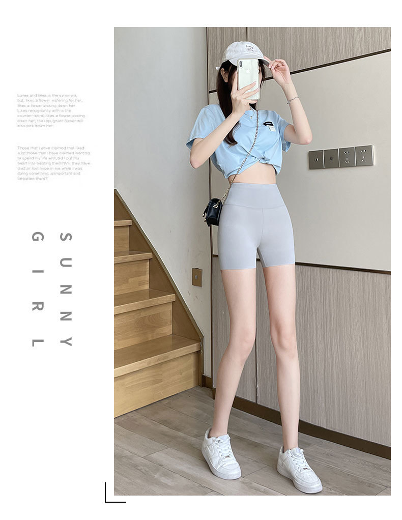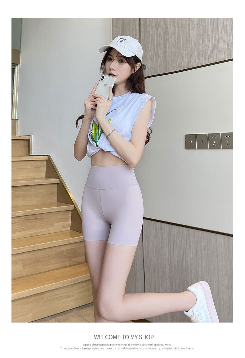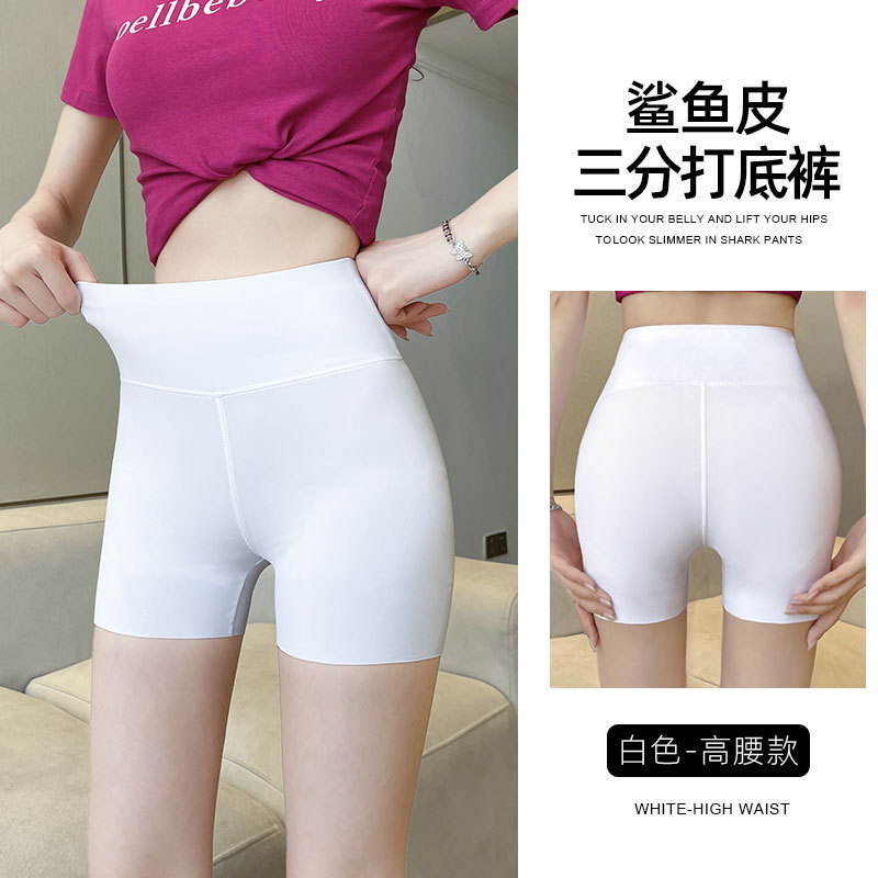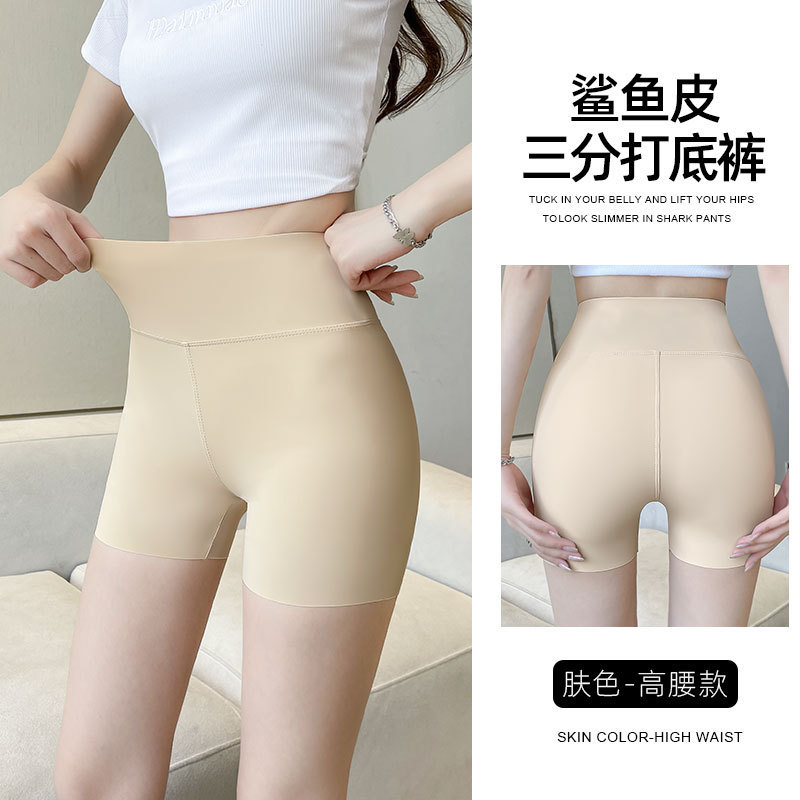 Защитные шорты для женщин, защита от воздействия, летний тонкий стиль, контроль живота, подтяжка бедер, не скручиваются, большие размеры, бесшовные шорты из ледяного шелка с основой в форме акулы.