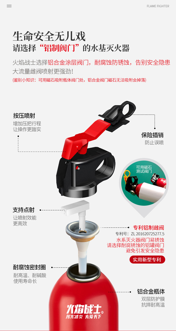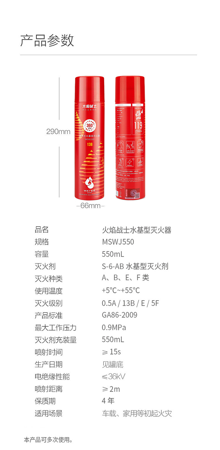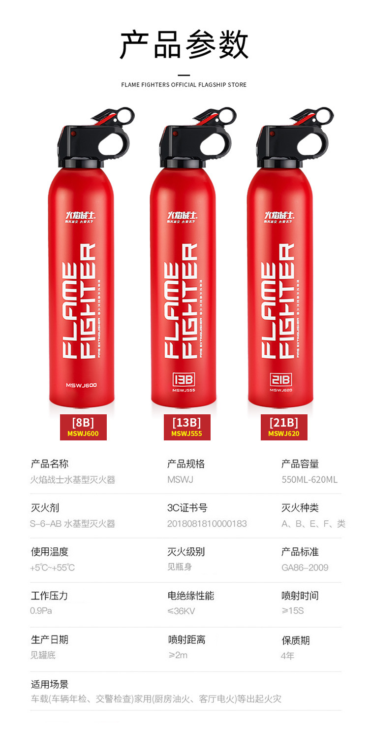 Огнетушитель автомобиля Flame Warrior Высокопроизводительный огнетушитель на водной основе небольшой портативный автомобиль пожарное оборудование