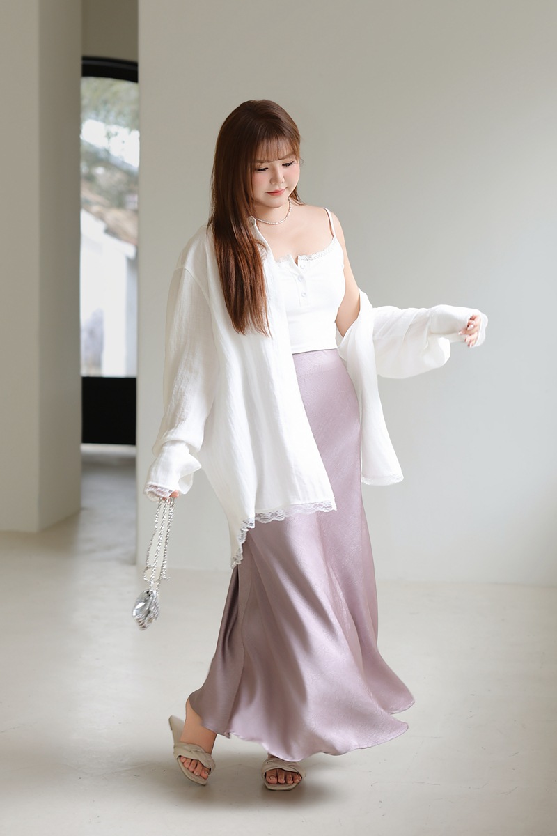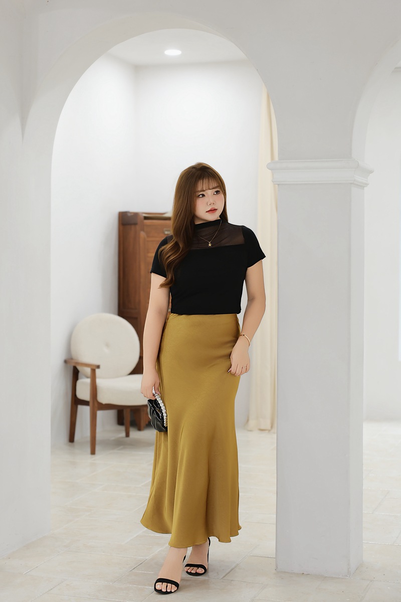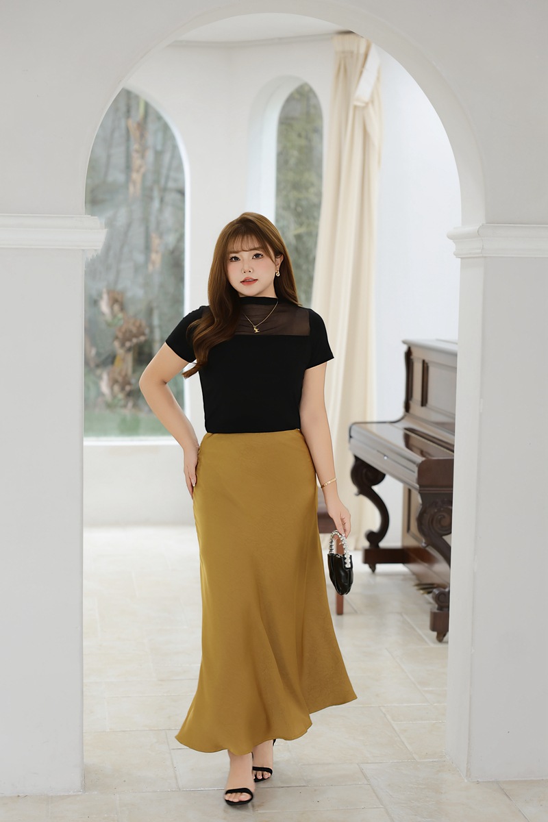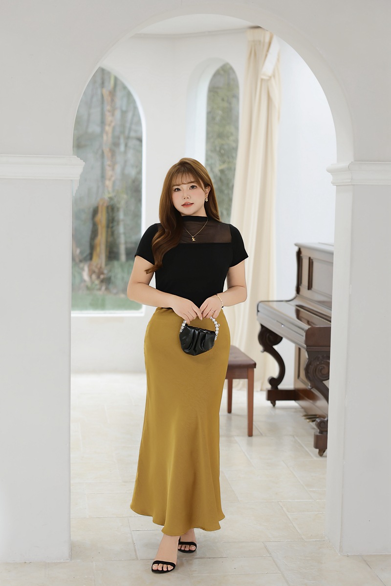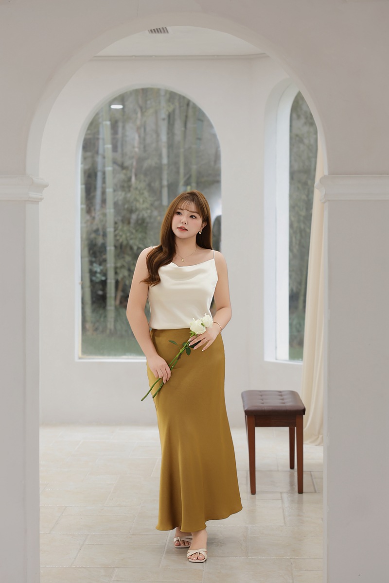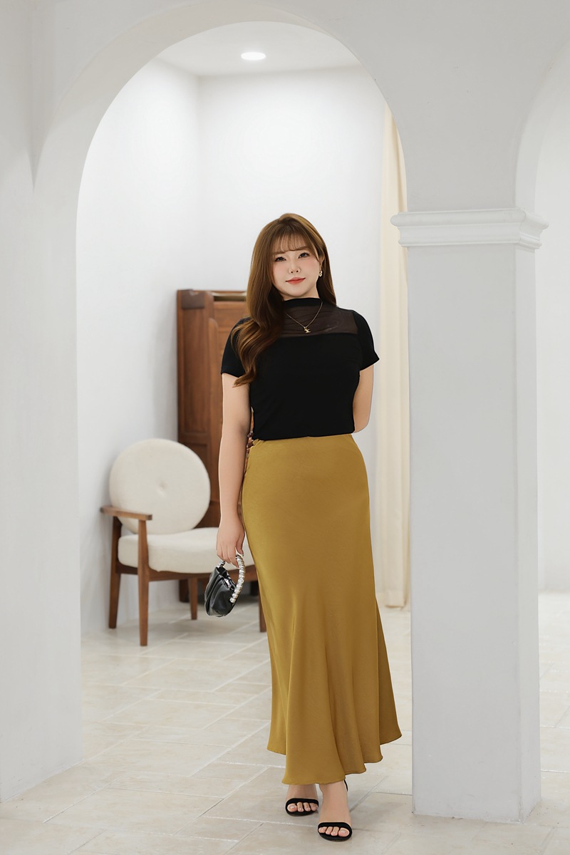 Юбка-русалка Runqi больших размеров из переливающегося имитированного ацетатного атласа, модель 9214, во французском стиле.