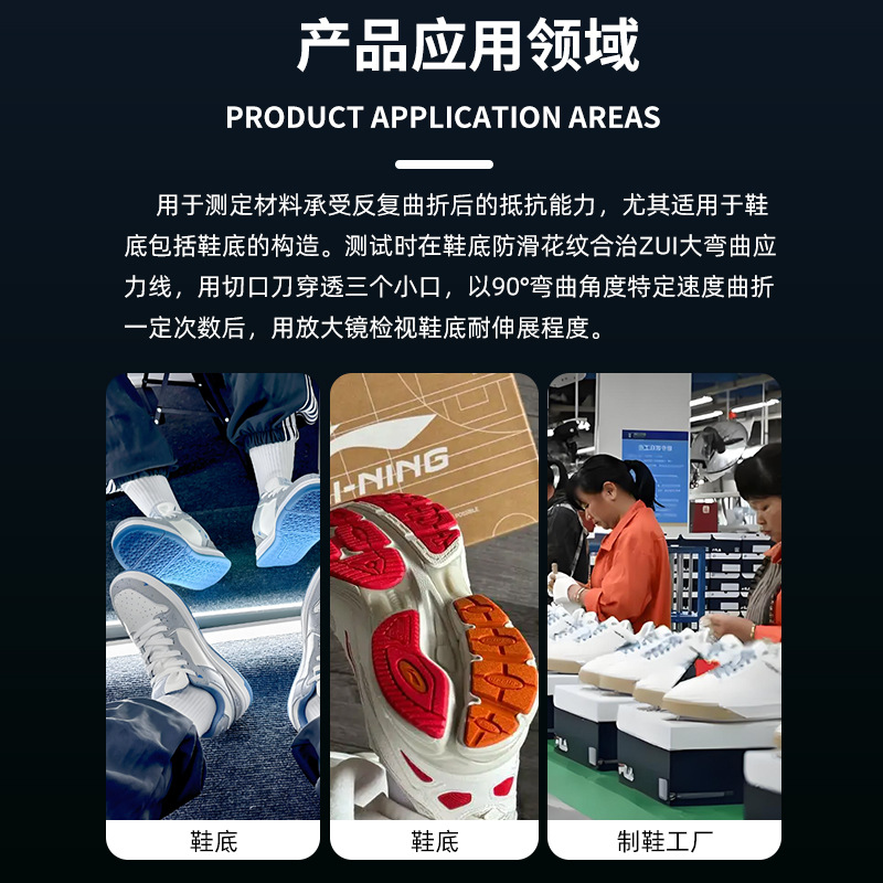 Машина для испытания на изгиб подошвы обуви EN — это устройство, специально используемое для оценки усталостной прочности материалов подошвы обуви при многократном изгибе. Он имитирует нагрузку на подошву обуви во время ходьбы или занятий спортом.
