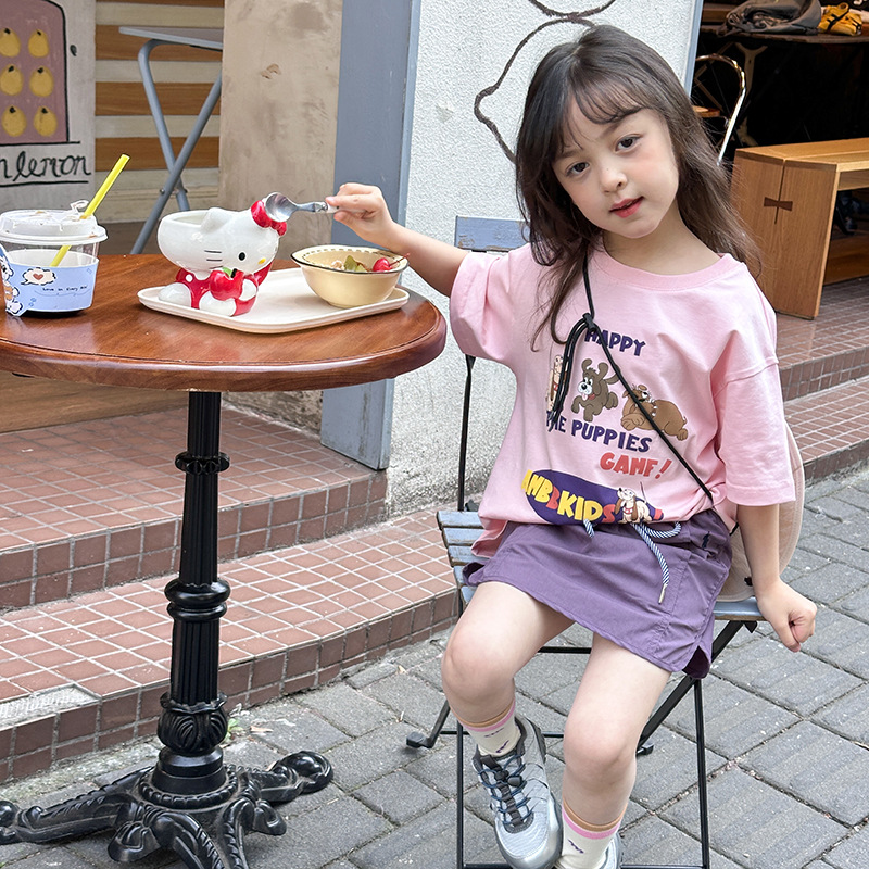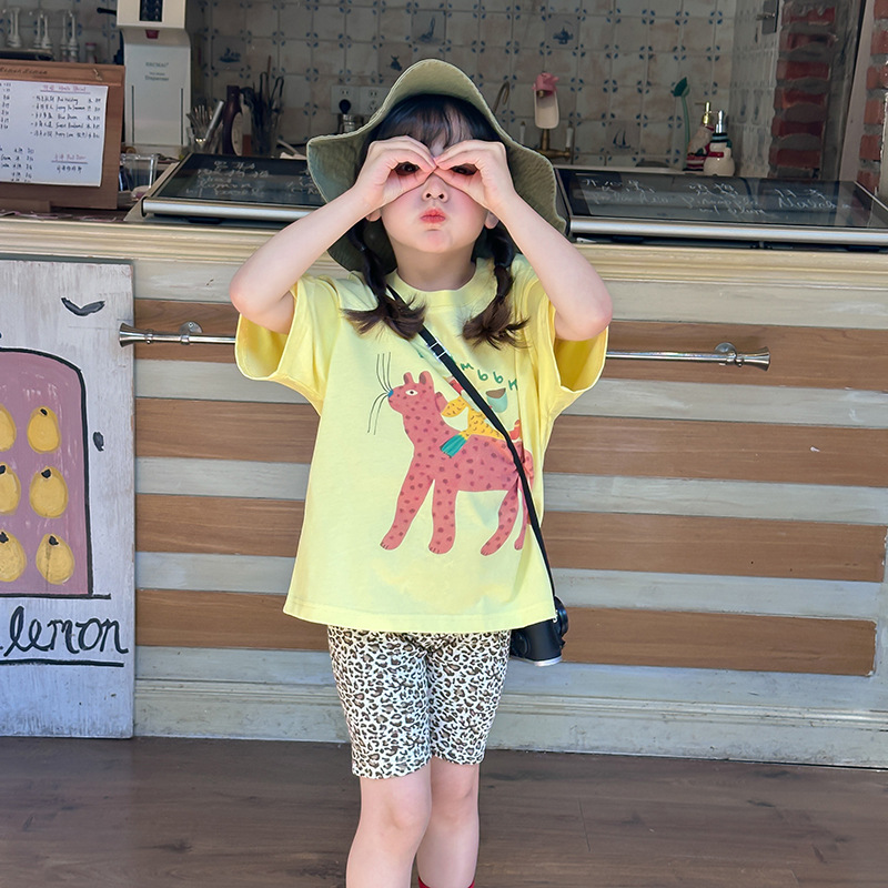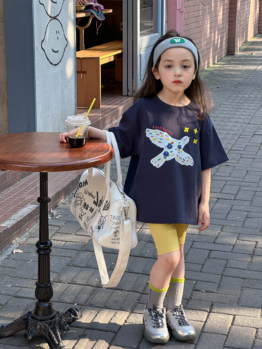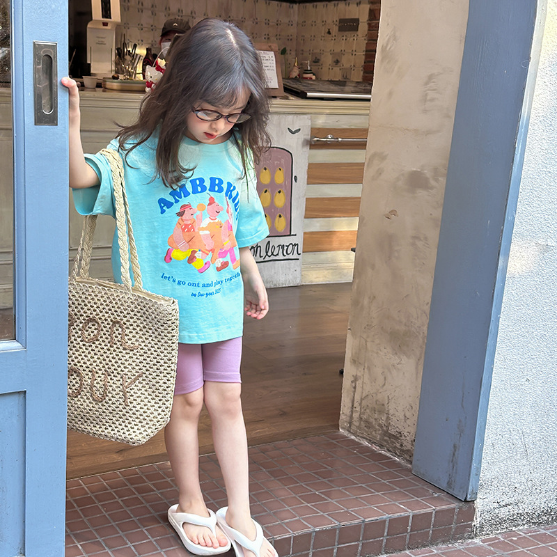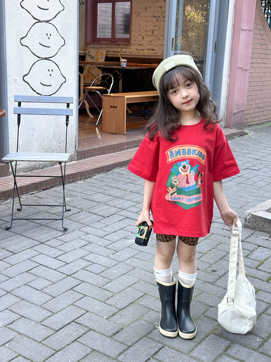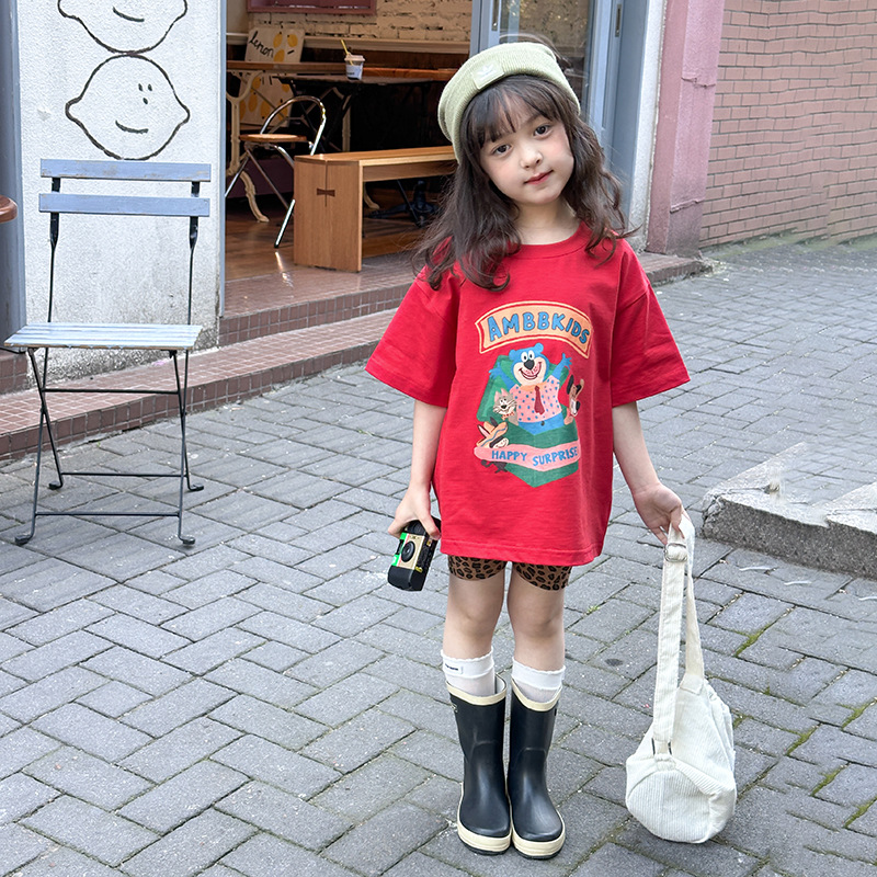 Aimo Bebe летняя детская одежда для детей корейская мультипликационная футболка повседневная свободная блузка с короткими рукавами с принтом в полукрукаве