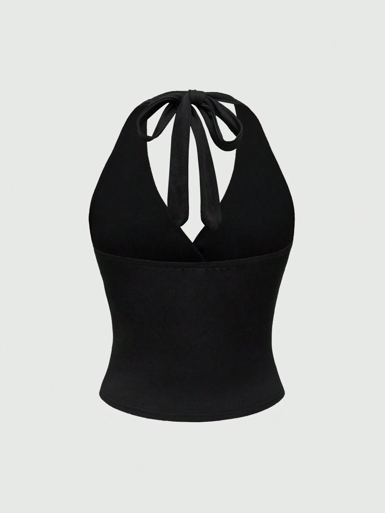 Популярный трансграничный товар: модный сексуальный укороченный топ-халтер с V-образным вырезом, без спинки, с леопардовым принтом в стиле ретро, в европейском и американском стиле, повседневный, универсальный.