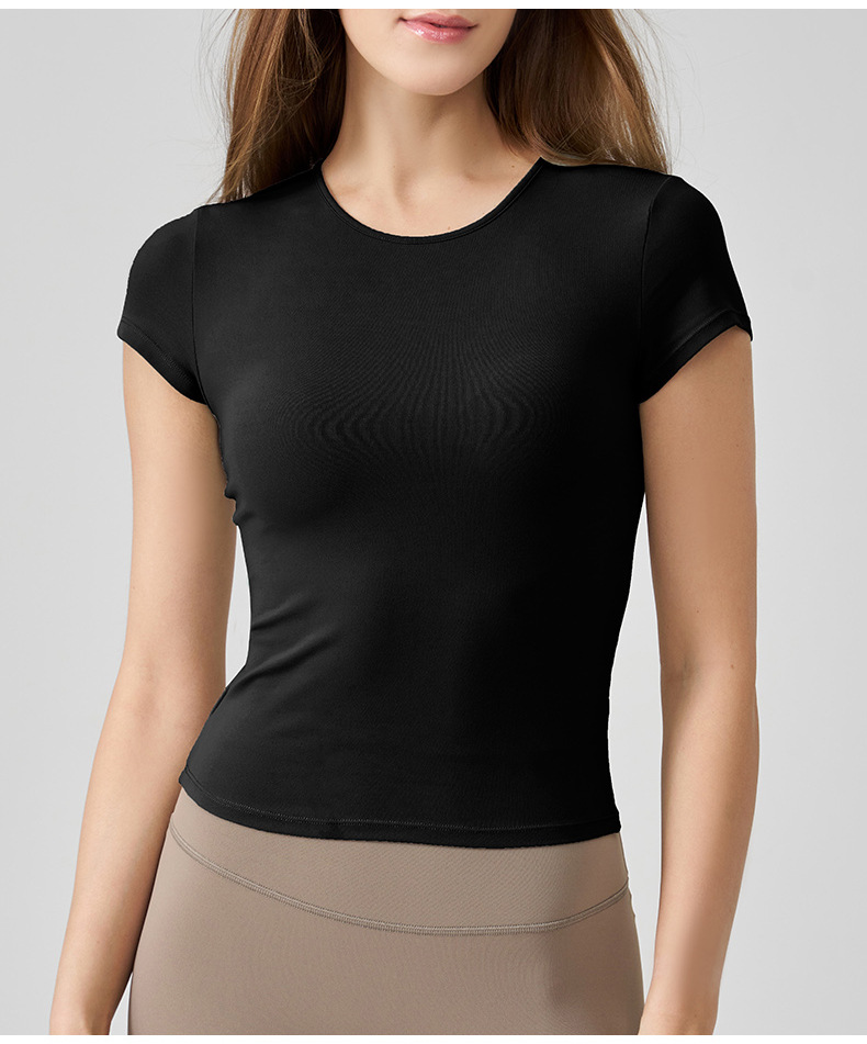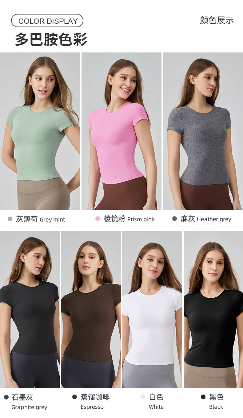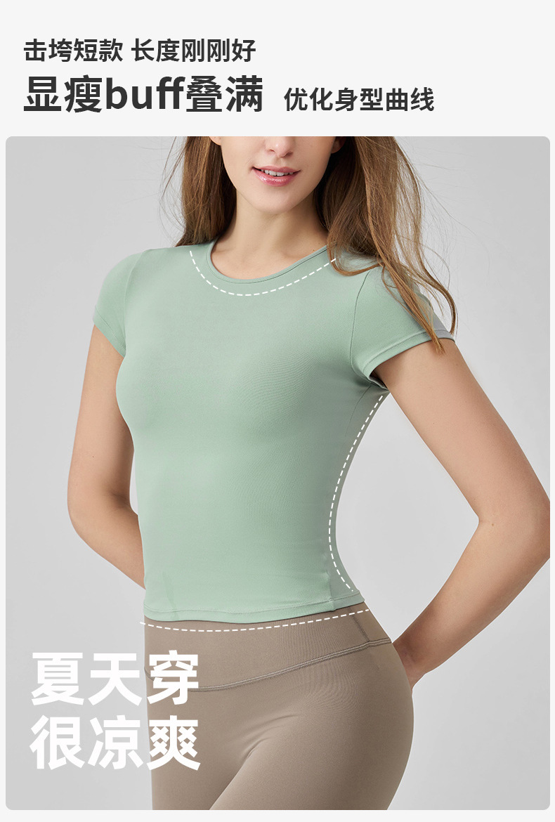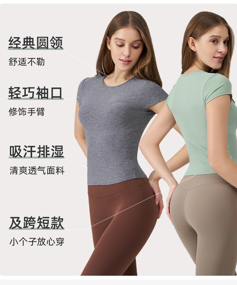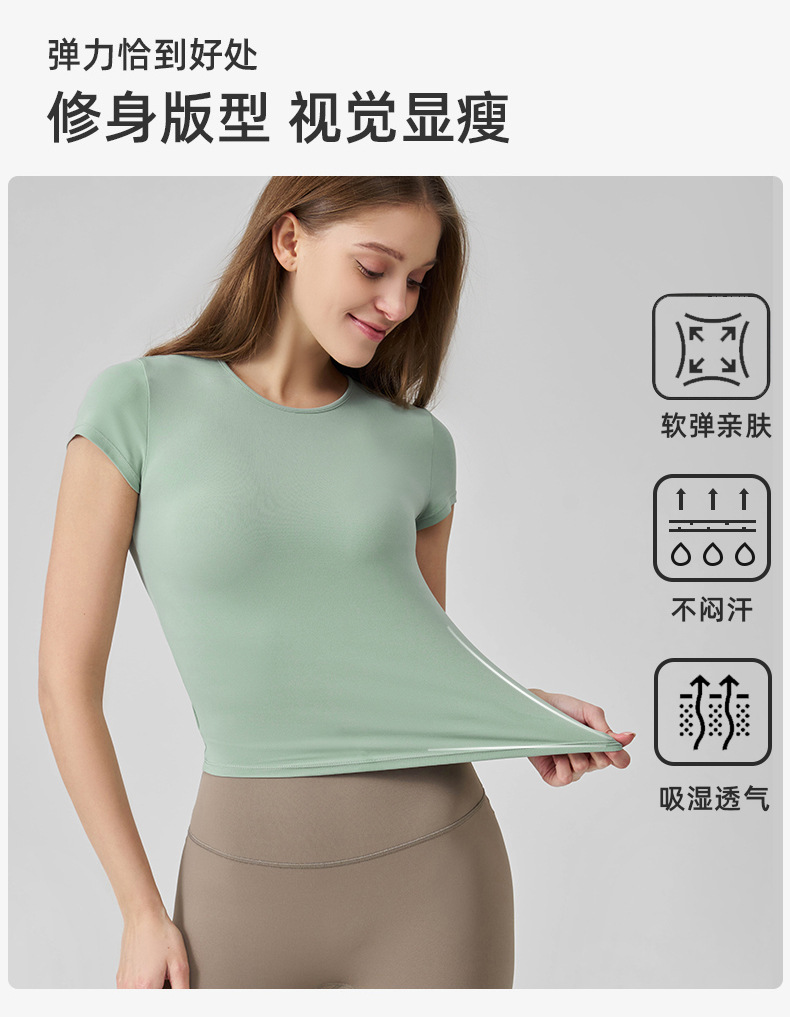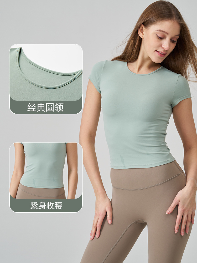 Спортивный топ SNU с круглым вырезом, облегающий, с эффектом «второй кожи», с короткими рукавами, для фитнеса и йоги, с высокой эластичностью и эффектом утягивания талии, для ношения как слой поверх одежды.