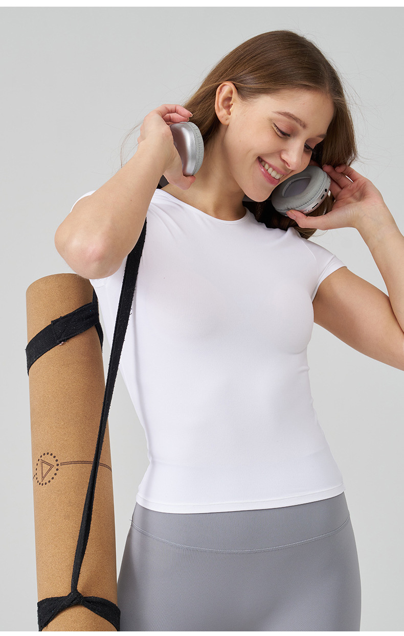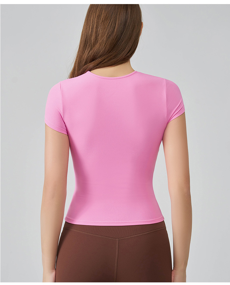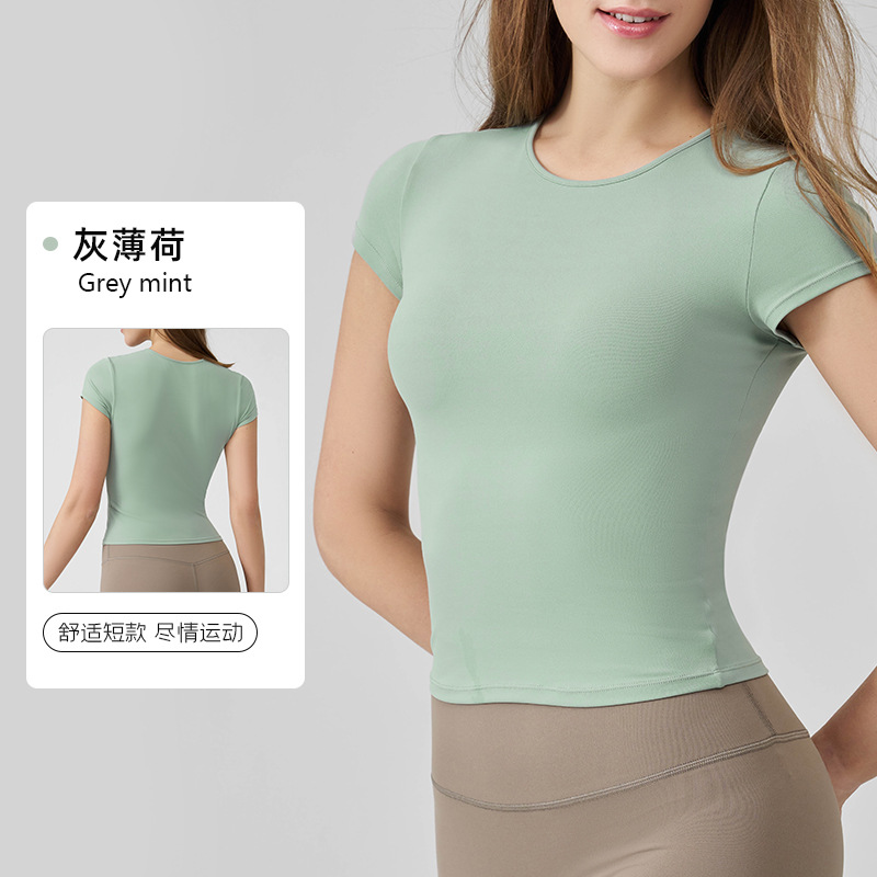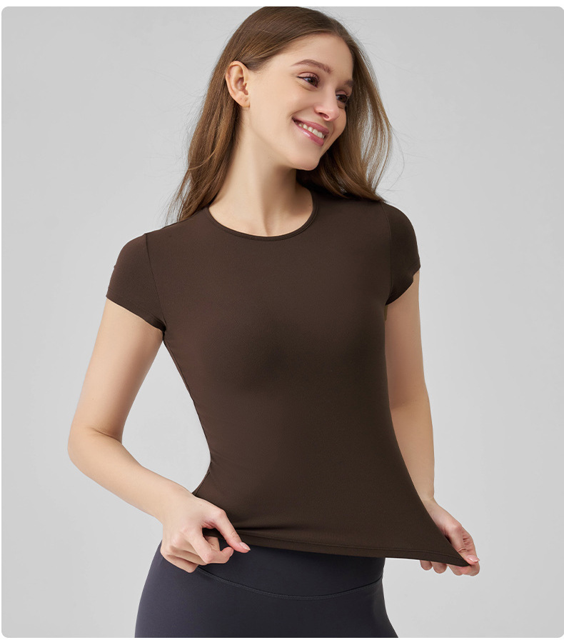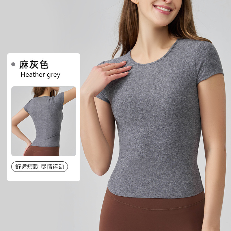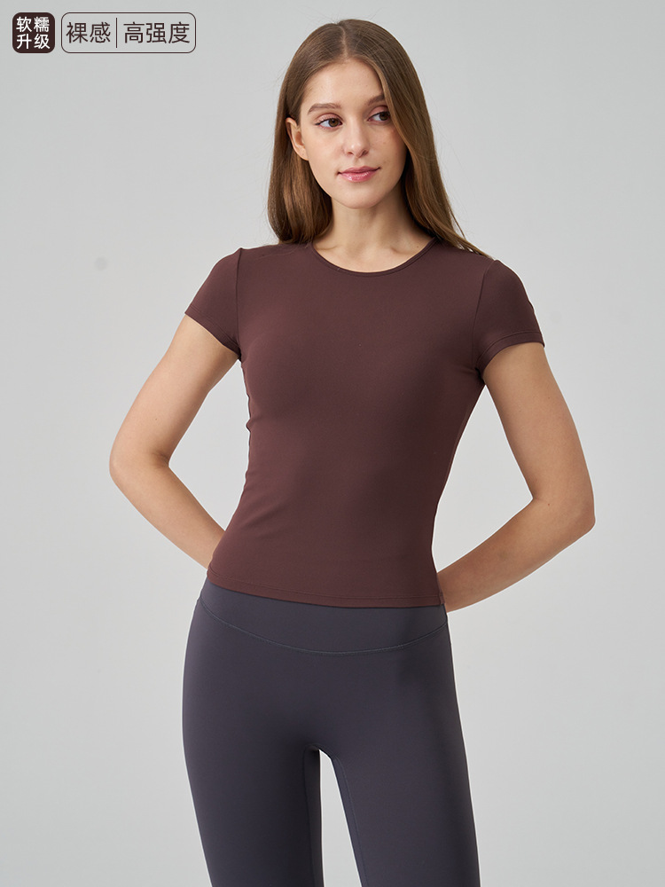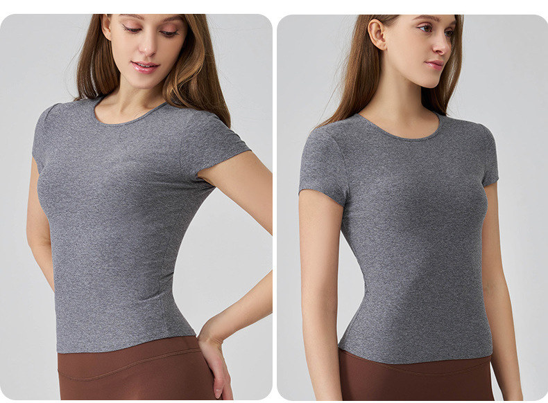Спортивный топ SNU с круглым вырезом, облегающий, с эффектом «второй кожи», с короткими рукавами, для фитнеса и йоги, с высокой эластичностью и эффектом утягивания талии, для ношения как слой поверх одежды.