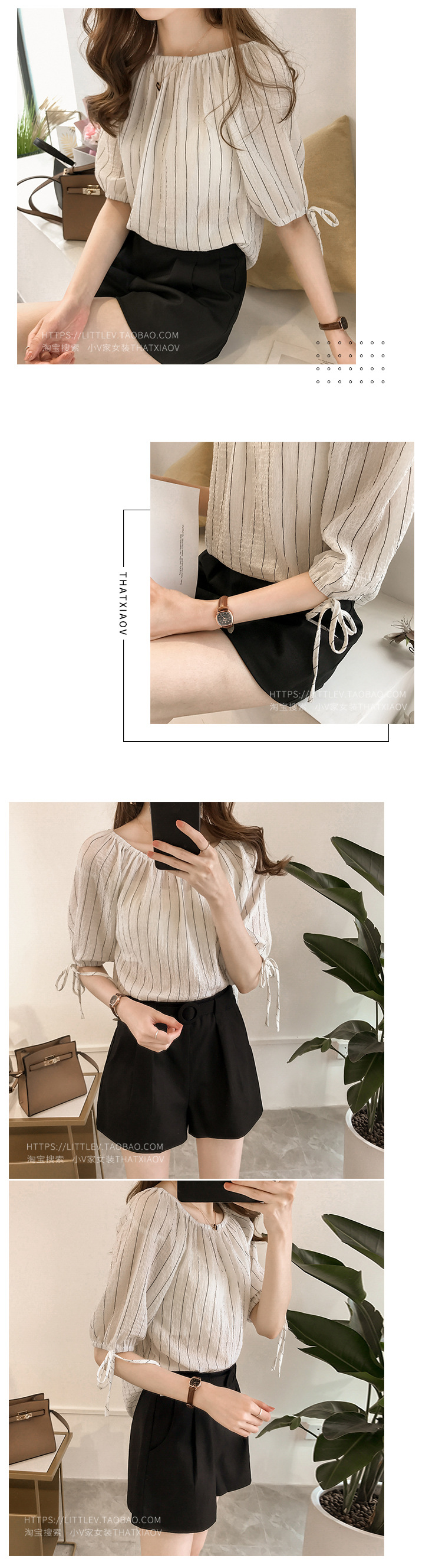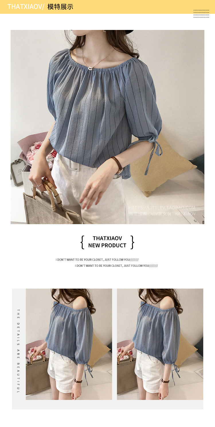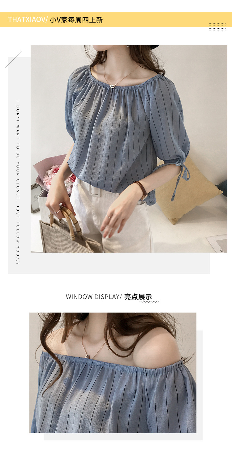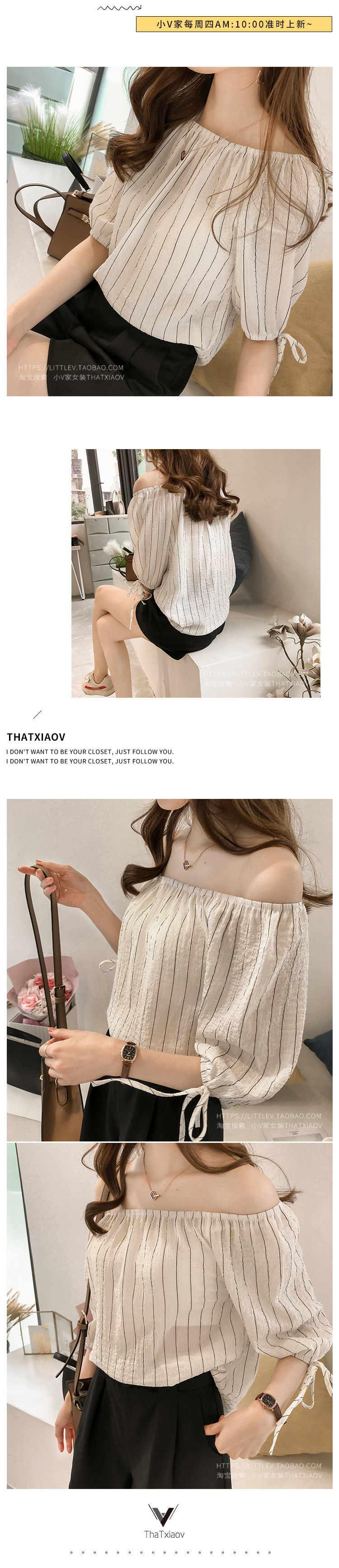 2025 новый стиль элегантная блузка с открытыми плечами из шифона в полоску для женщин с свободными рукавами-фонариками модная базовая рубашка