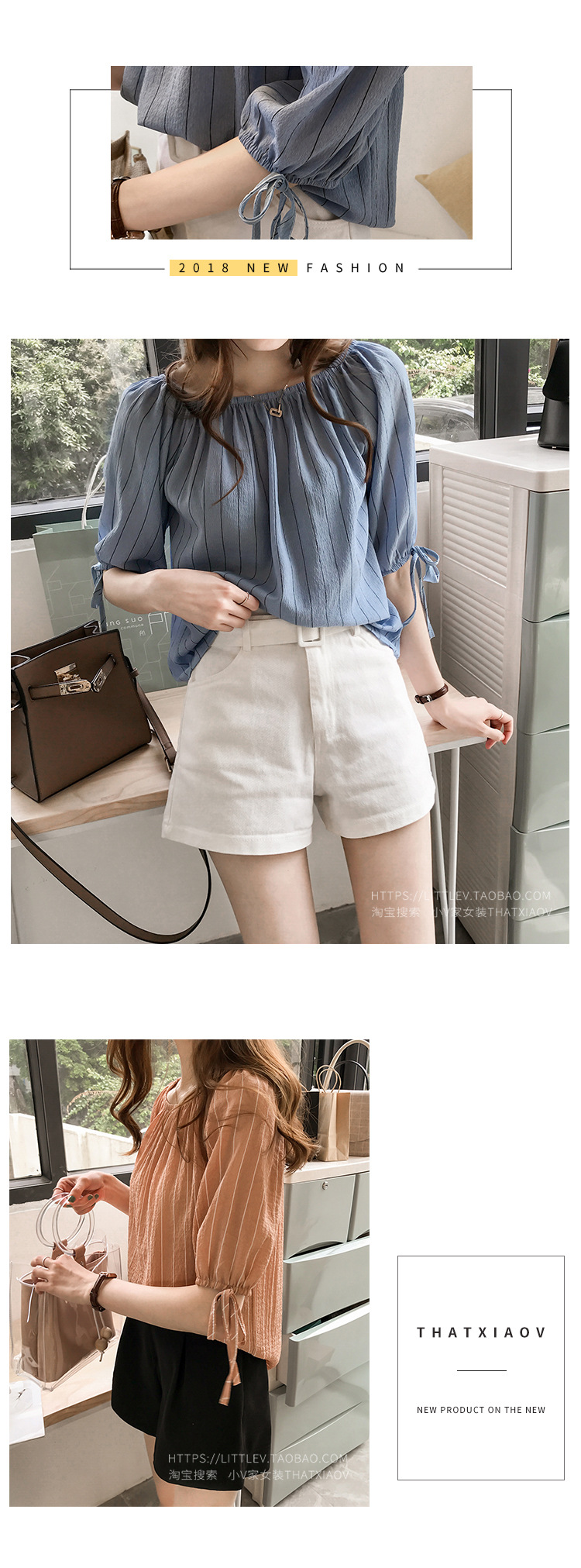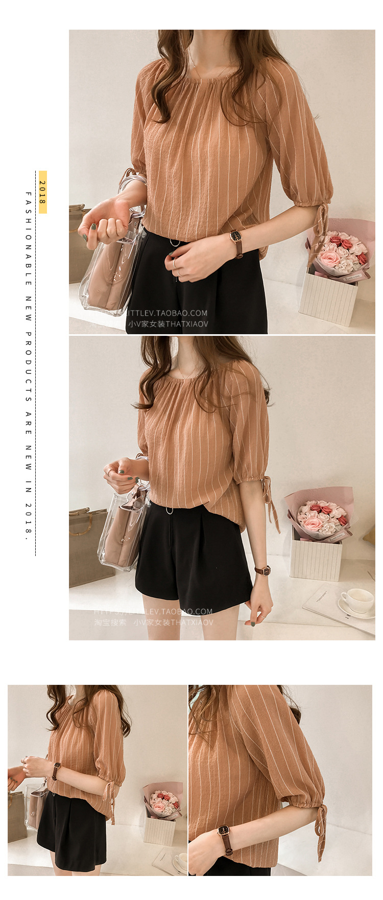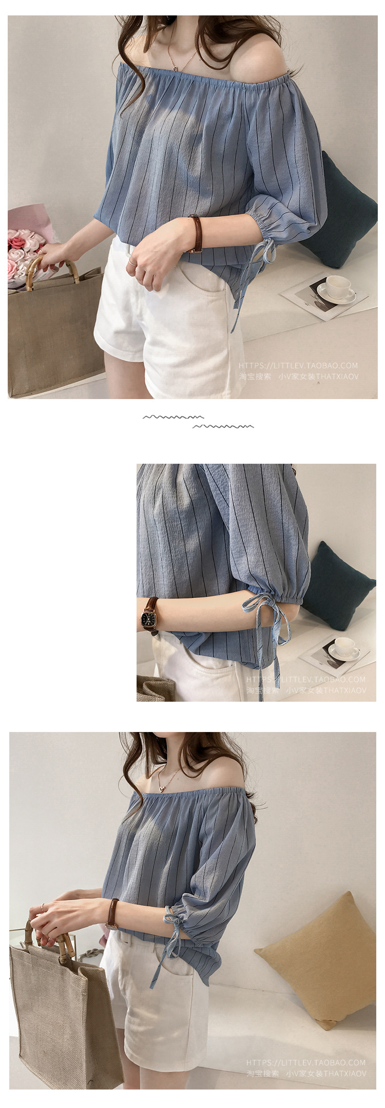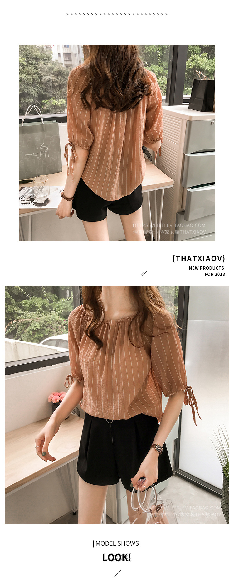 2025 новый стиль элегантная блузка с открытыми плечами из шифона в полоску для женщин с свободными рукавами-фонариками модная базовая рубашка