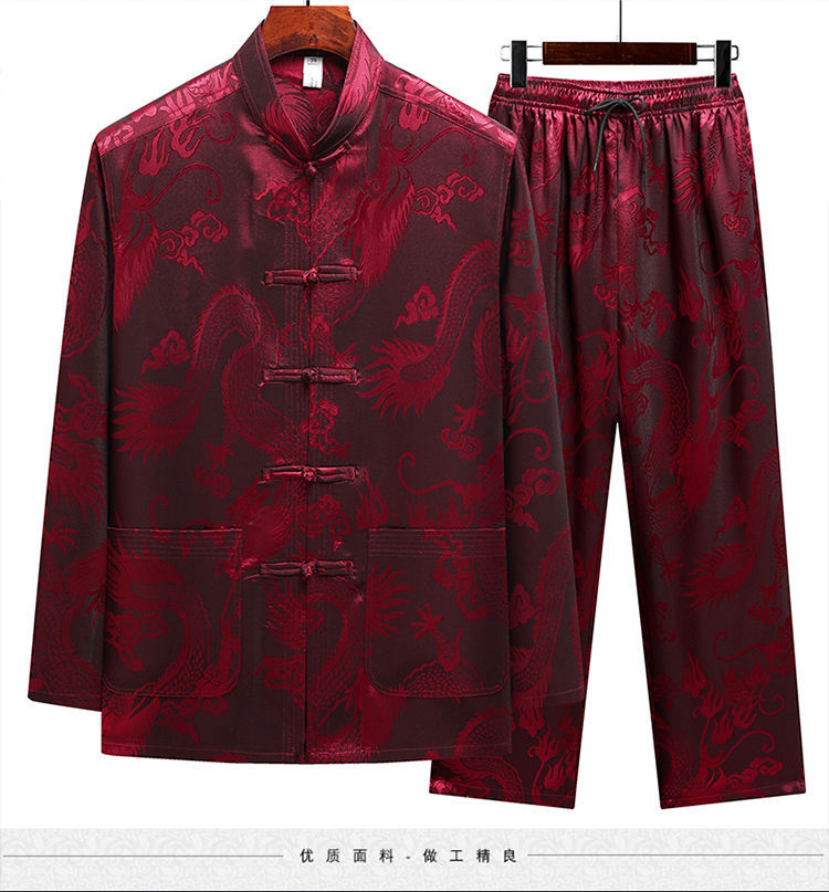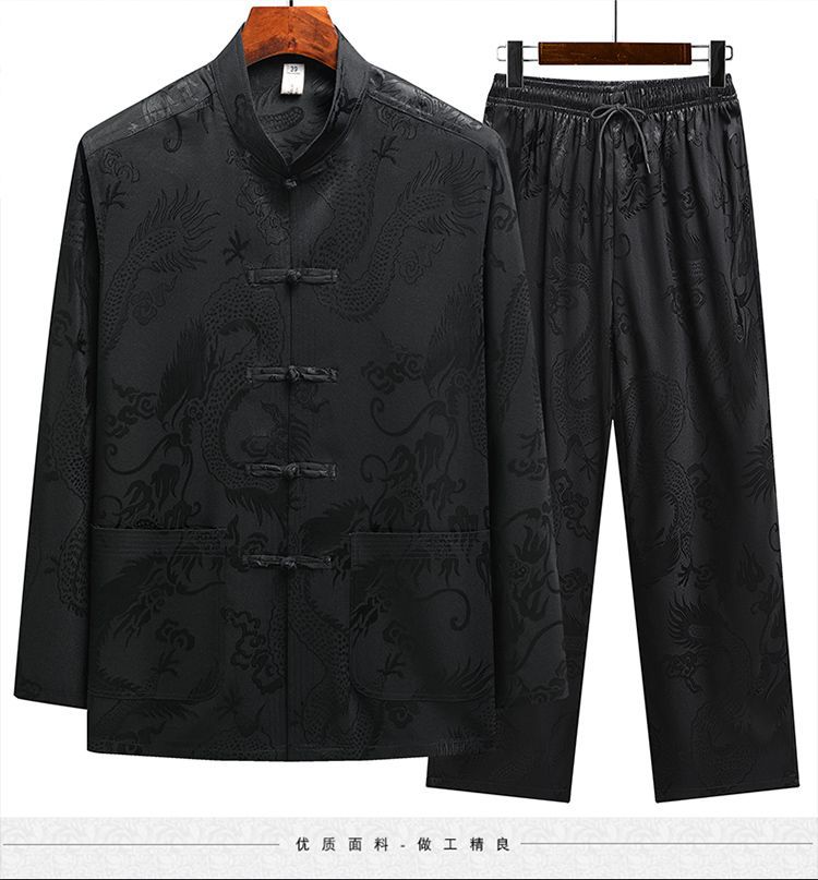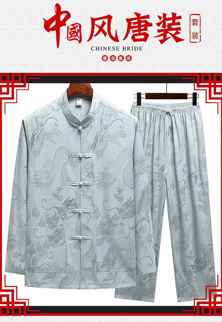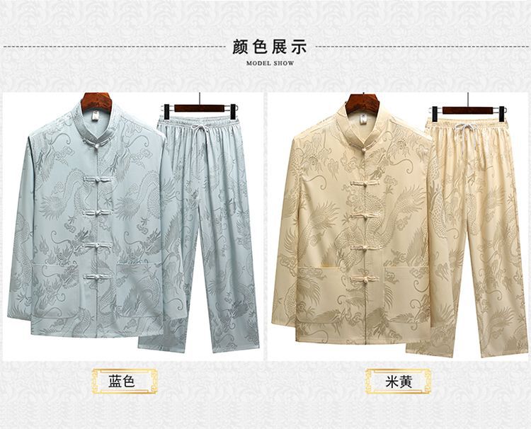 Тан костюм мужской ледяной шелковый костюм с длинными рукавами весной и летом