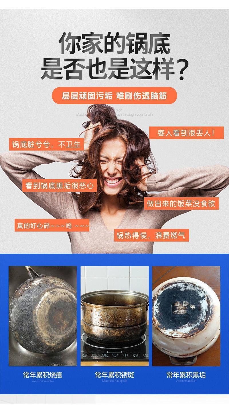 Очиститель из нержавеющей стали для мытья кастрюль с черной грязью, кухонными масляными пятнами, мощный гель для обеззараживания, для очистки дна кастрюли и удаления пятен ржавчины.