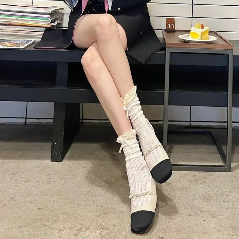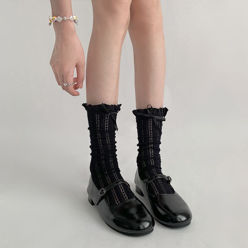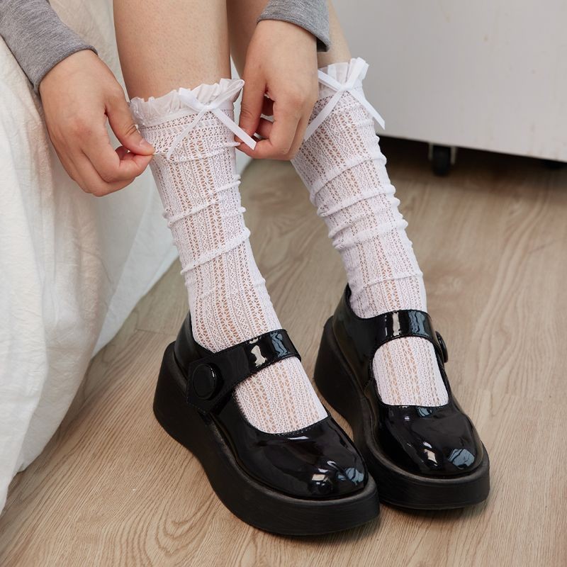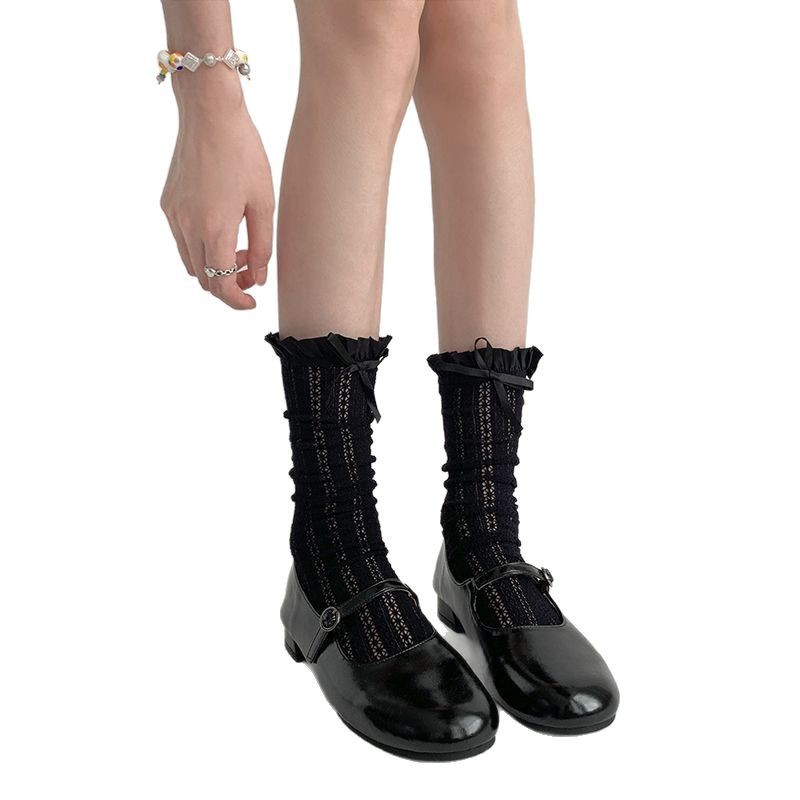 Балетный стиль Французские кружевные носки с бантами Летняя тонкая сетка