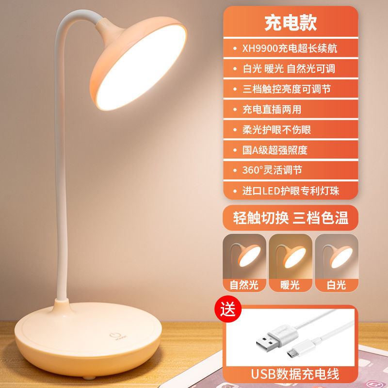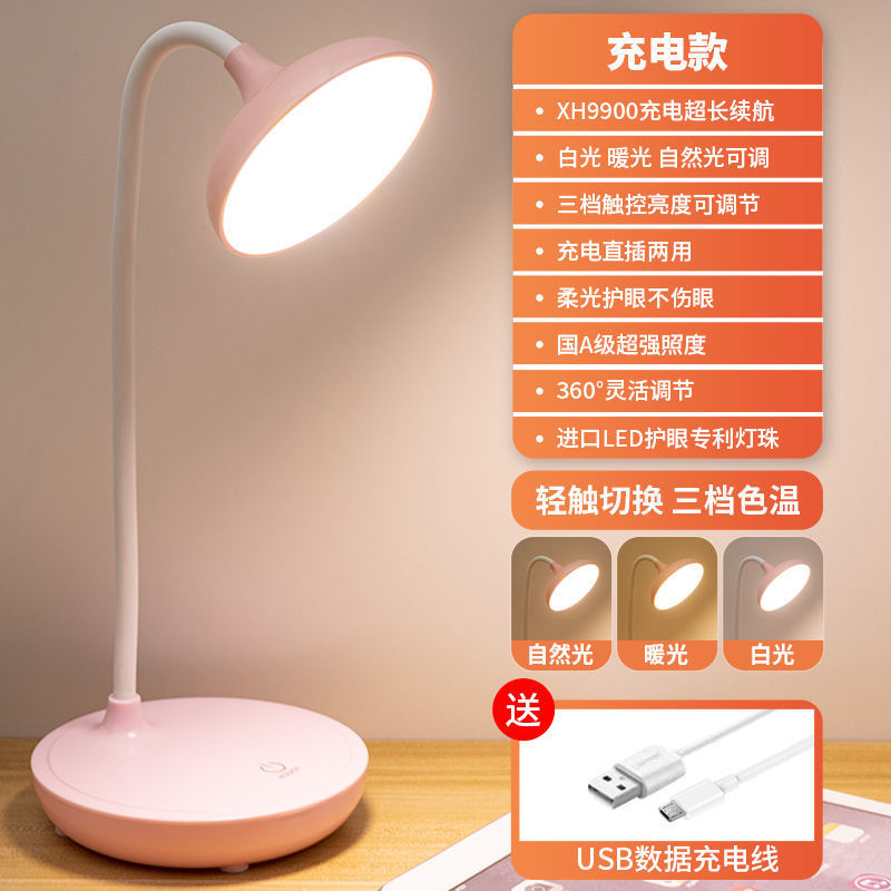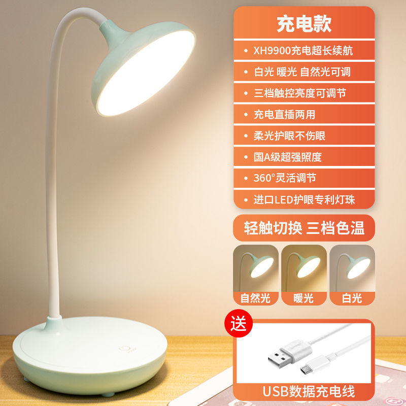 Светодиодная трехскоростная настольная лампа с сенсорным затемнением для чтения, общежитие, студенты колледжа, учеба, специальная зарядка, супер яркая прикроватная лампа, оптовая продажа