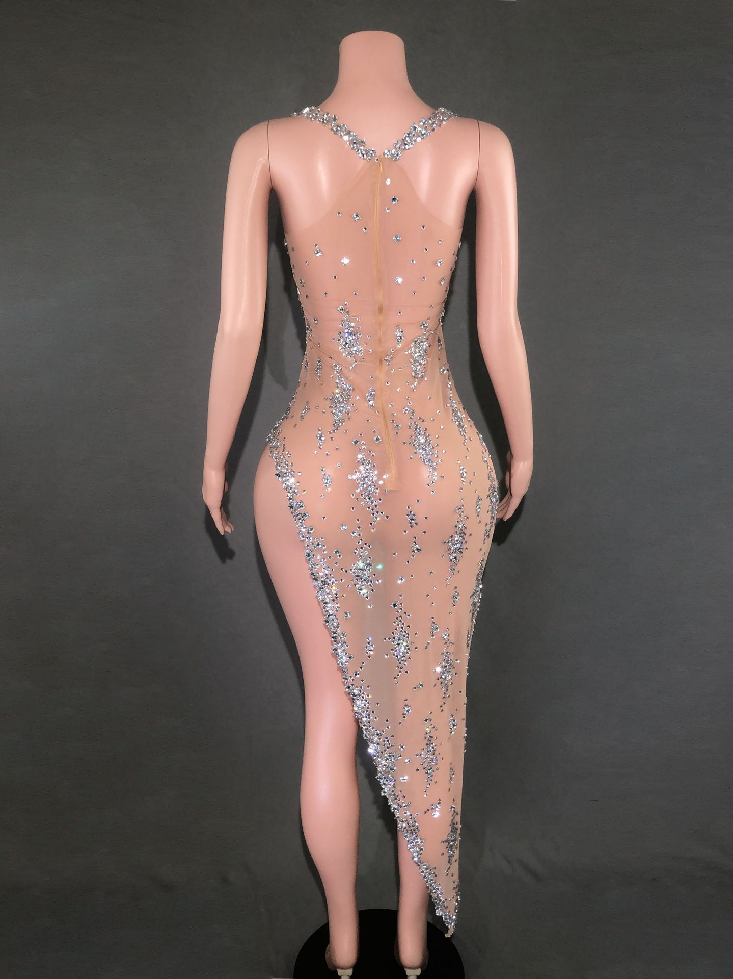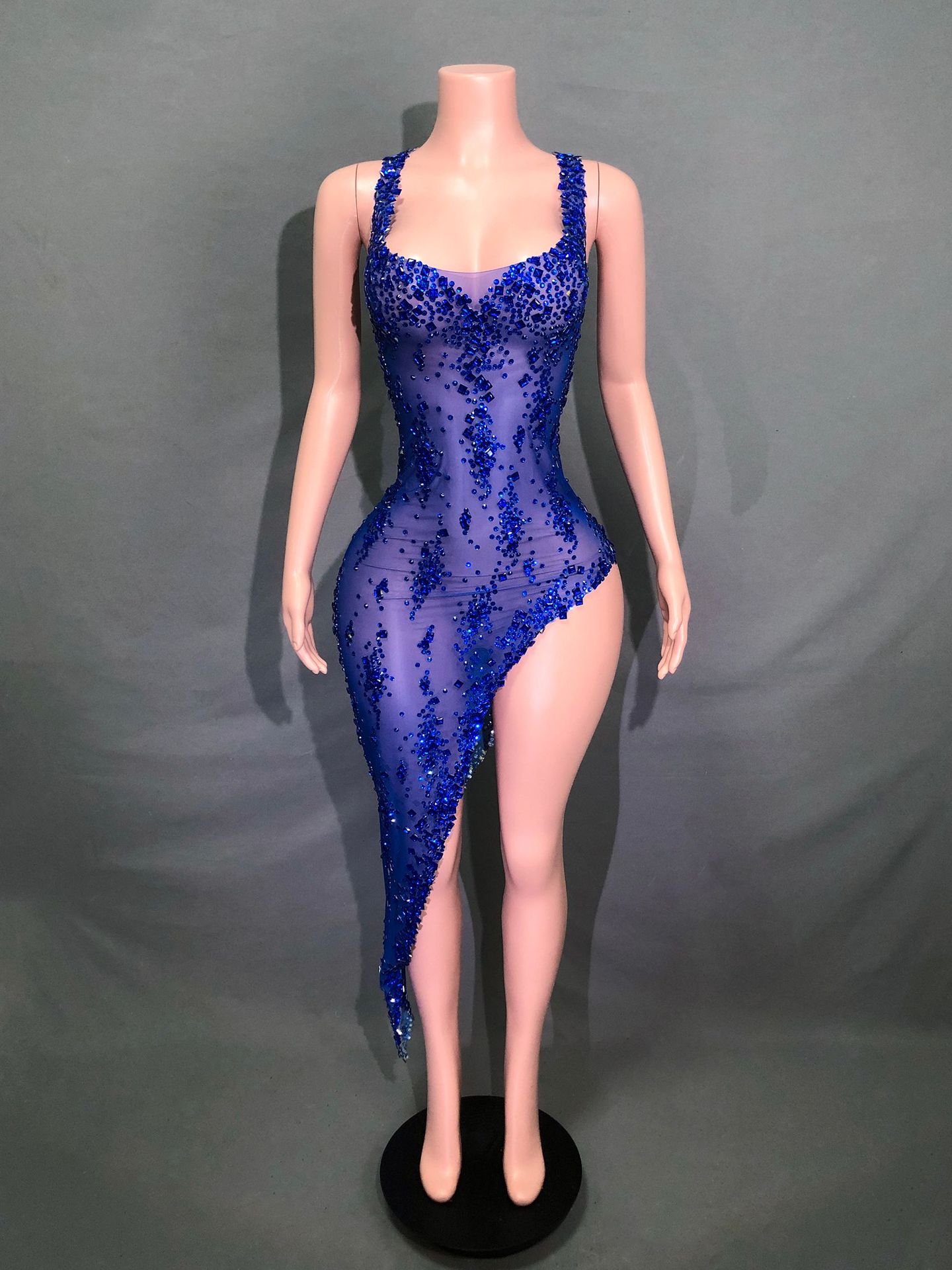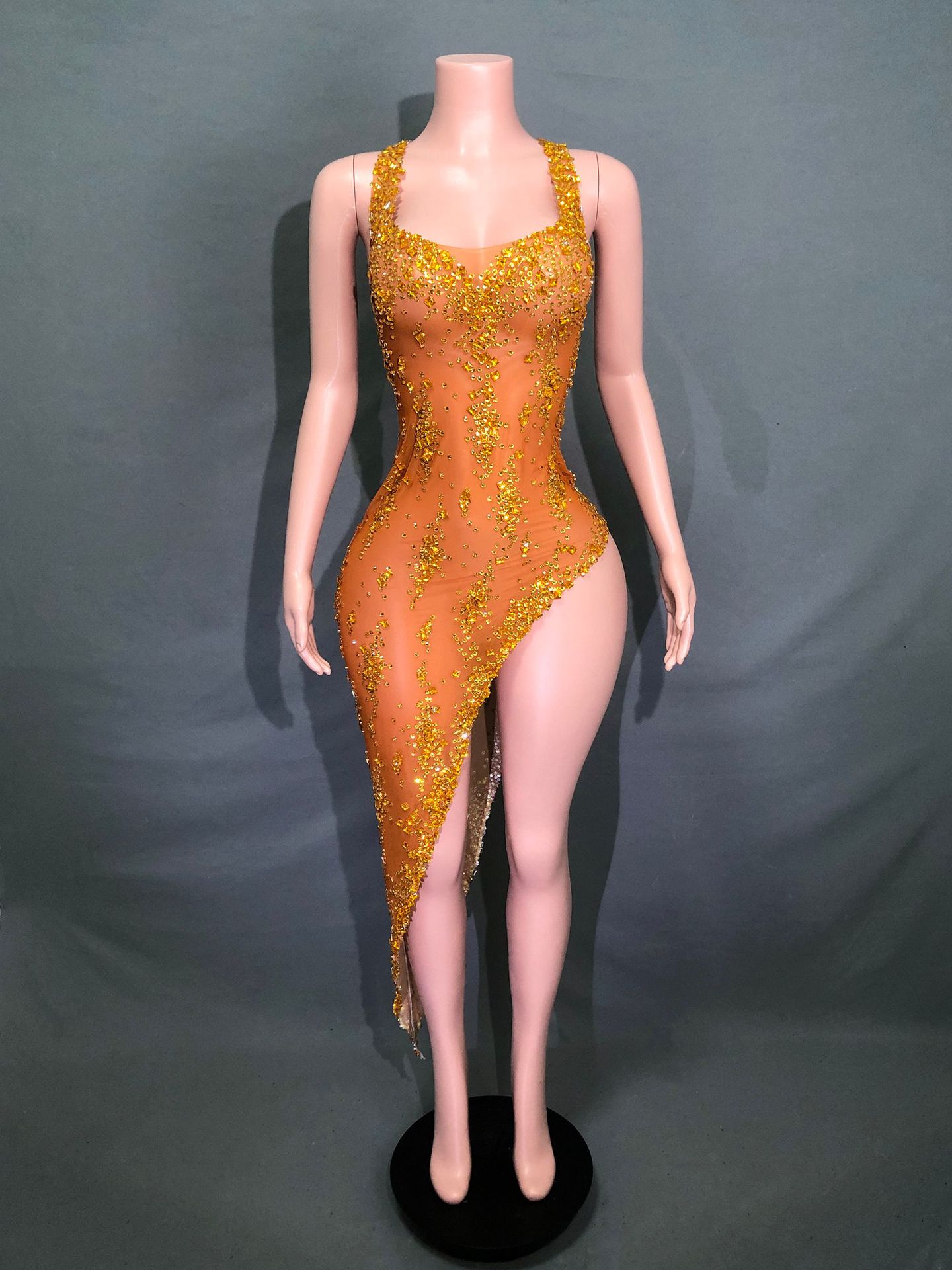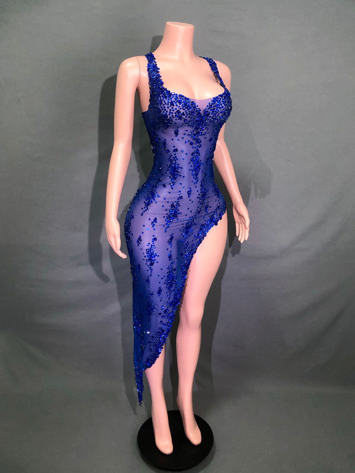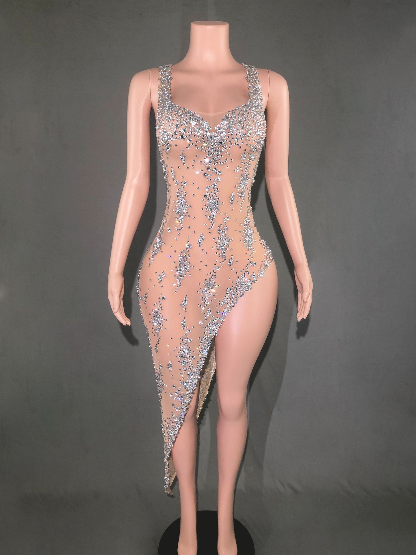 Новая цельная одежда для выступлений, сценический комбинезон с бриллиантами, европейский и американский красный сексуальный прозрачный комбинезон
