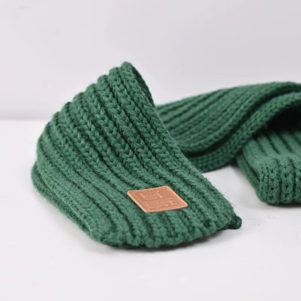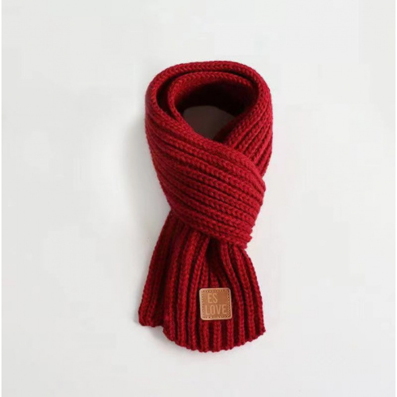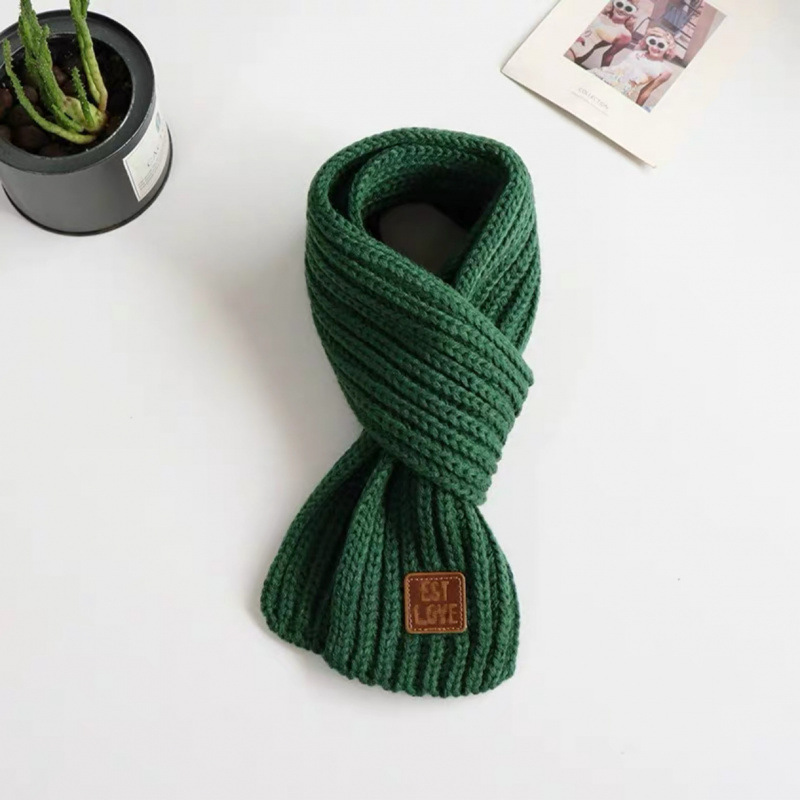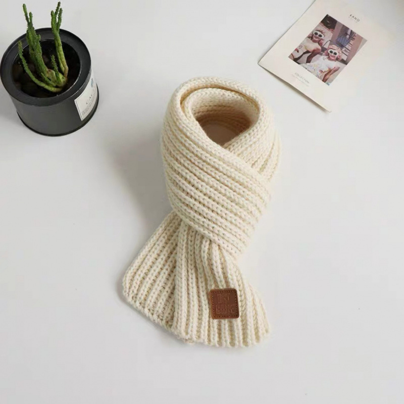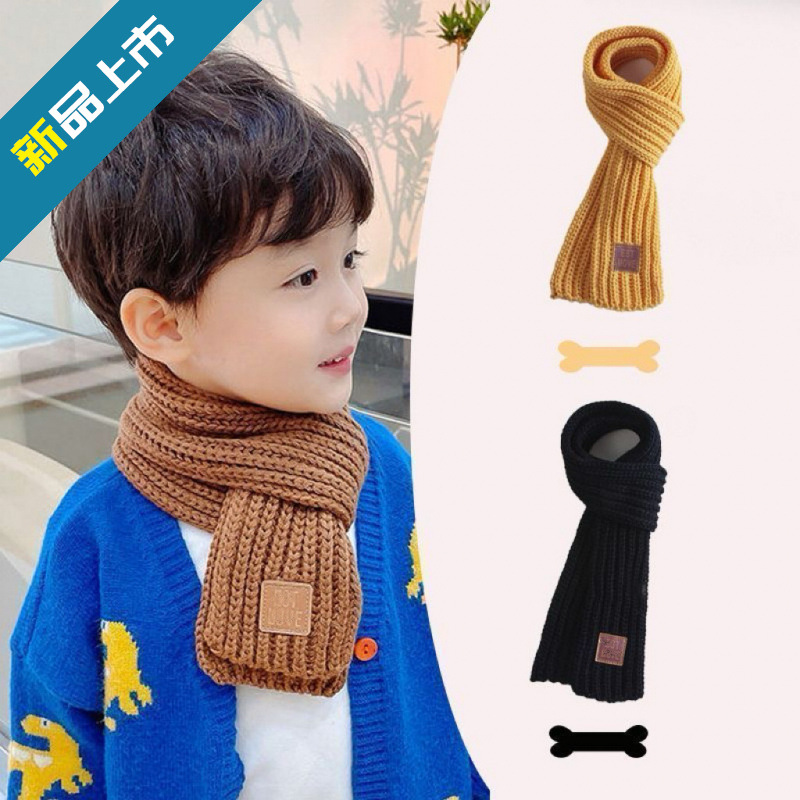 2025 новый зимний теплый и утолщенный корейский вязаный шарф для мальчиков и девочек, защита шеи детей, ветрозащитная кожаная этикетка чистого цвета