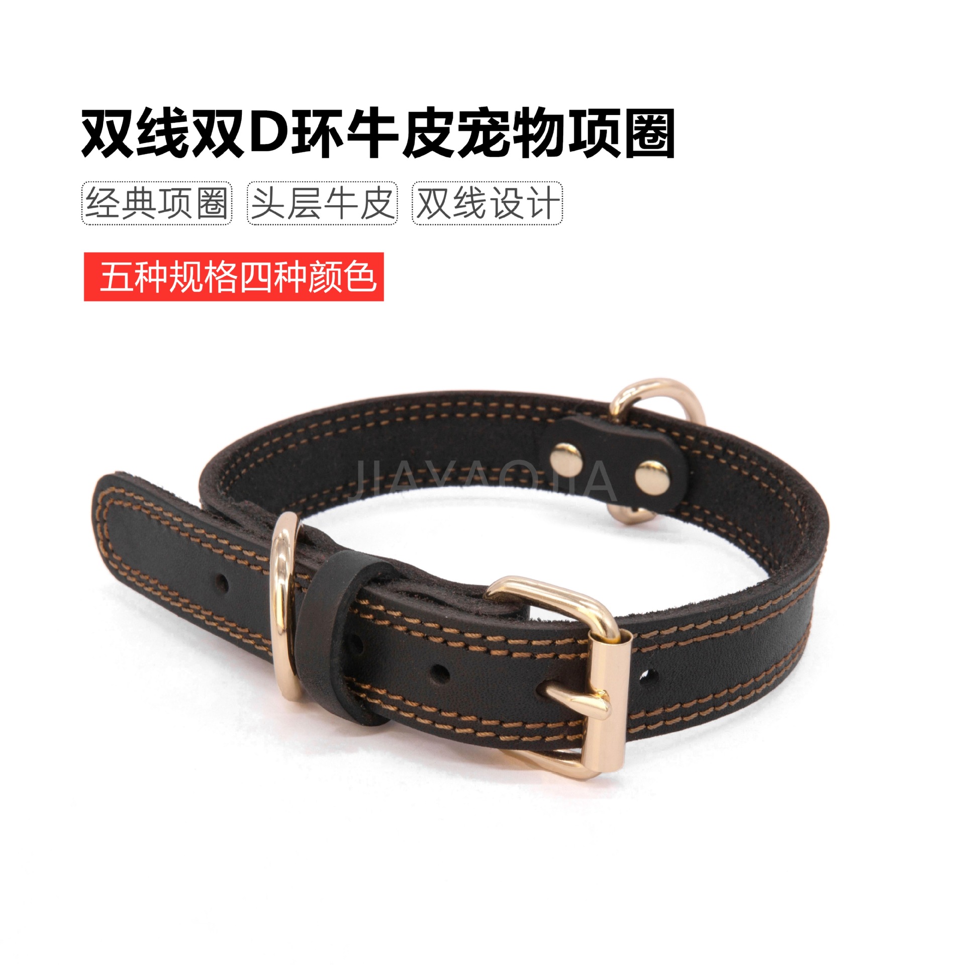 Ошейник из воловьей кожи первого слоя, ошейник из натуральной кожи, ошейник для собак, двойная нить, двойная пряжка D, не повреждает шею, прочный и долговечный, предотвращает падение.
