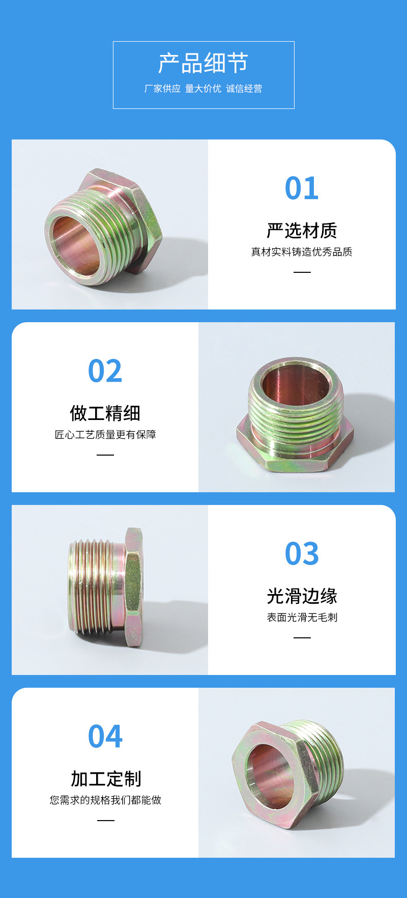 余姚市捷森汽车零部件有限公司(余姚市捷鑫五金厂)是汽车推杆、液压接头、流体连接件、内六角堵头、机接零部件、汽车零部件等产品专业生产加工的企业,余姚市捷森汽车零部件有限公司拥有多年的行业经验和完整、科学的质量管理体系,还可定制五金各类非标件产品。余姚市捷森汽车零部件有限公司的诚信、实力和产品质量获得业界的认可。欢迎各界朋友光临余姚市捷森汽车零部件有限公司参观、指导和业务洽谈。